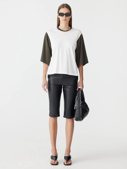 BASSIKE CONTRAST BOXY 3/4 SLEEVE T-SHIRT WHITE/ASH