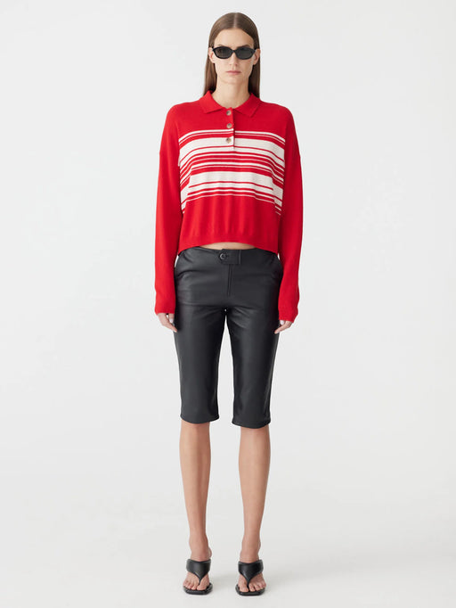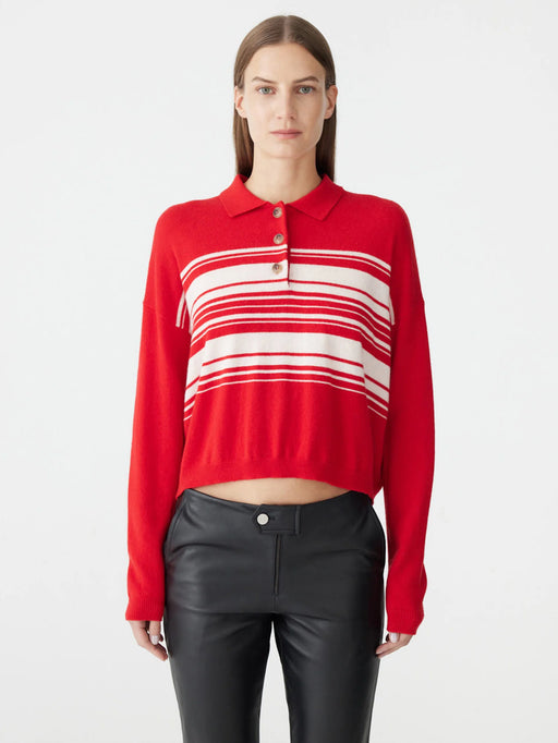 BASSIKE STRIPE WOOL CASHMERE POLO RED/NATURAL