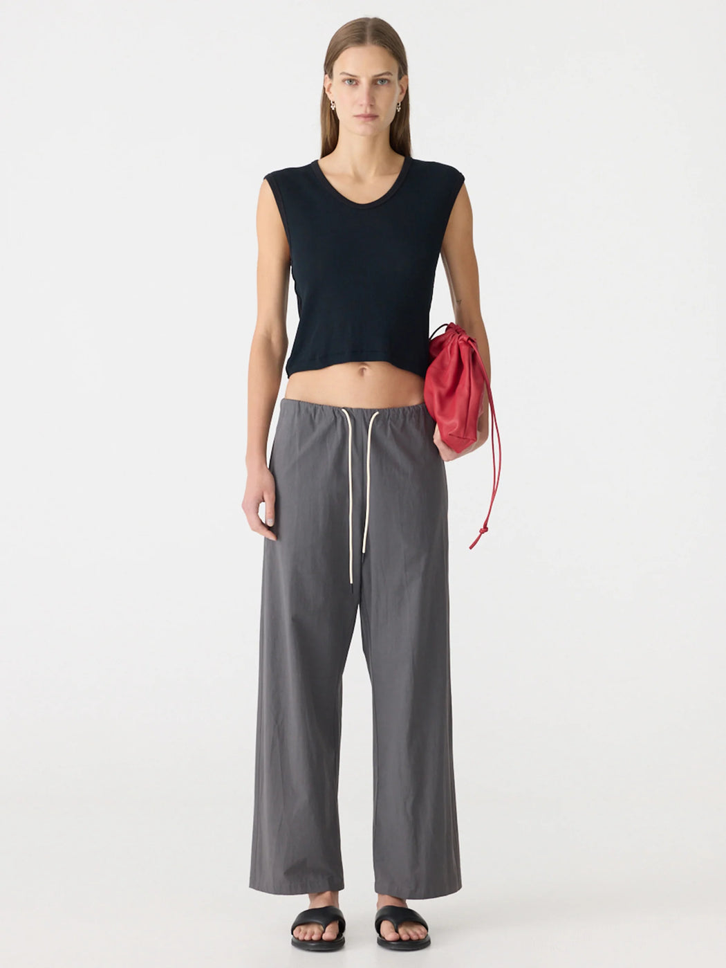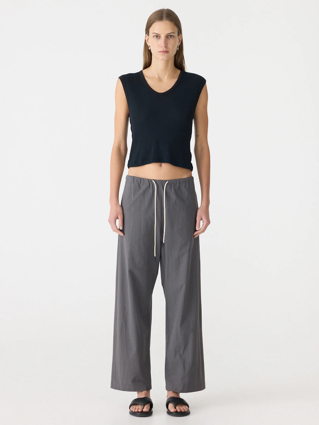 The Crushed Cotton Minimal Pant are crafted in lightweight compact cotton with a naturally crushed texture. Designed for an effortless, relaxed fit with a fine elasticated waistband and premade drawcord, finished with side entry pockets.