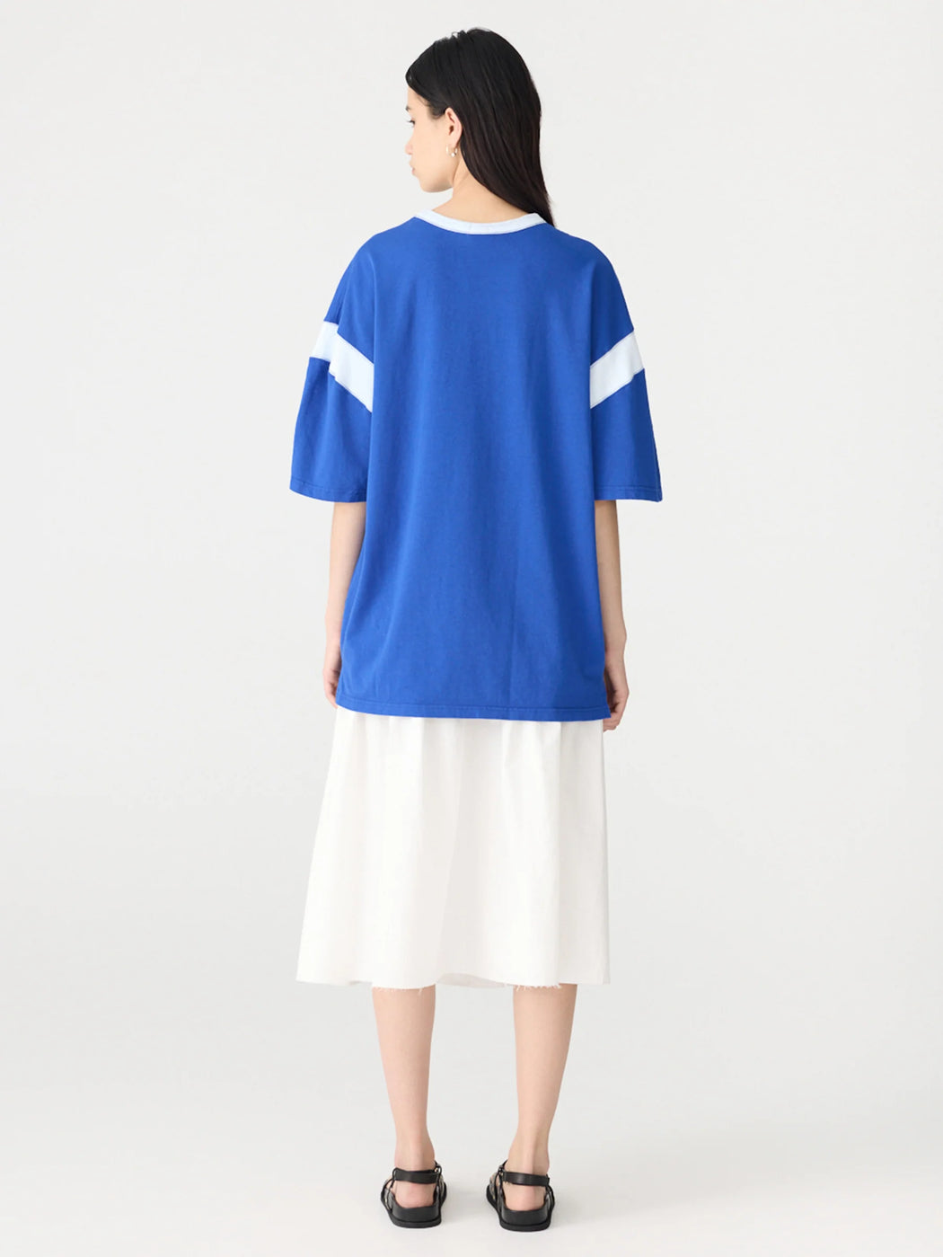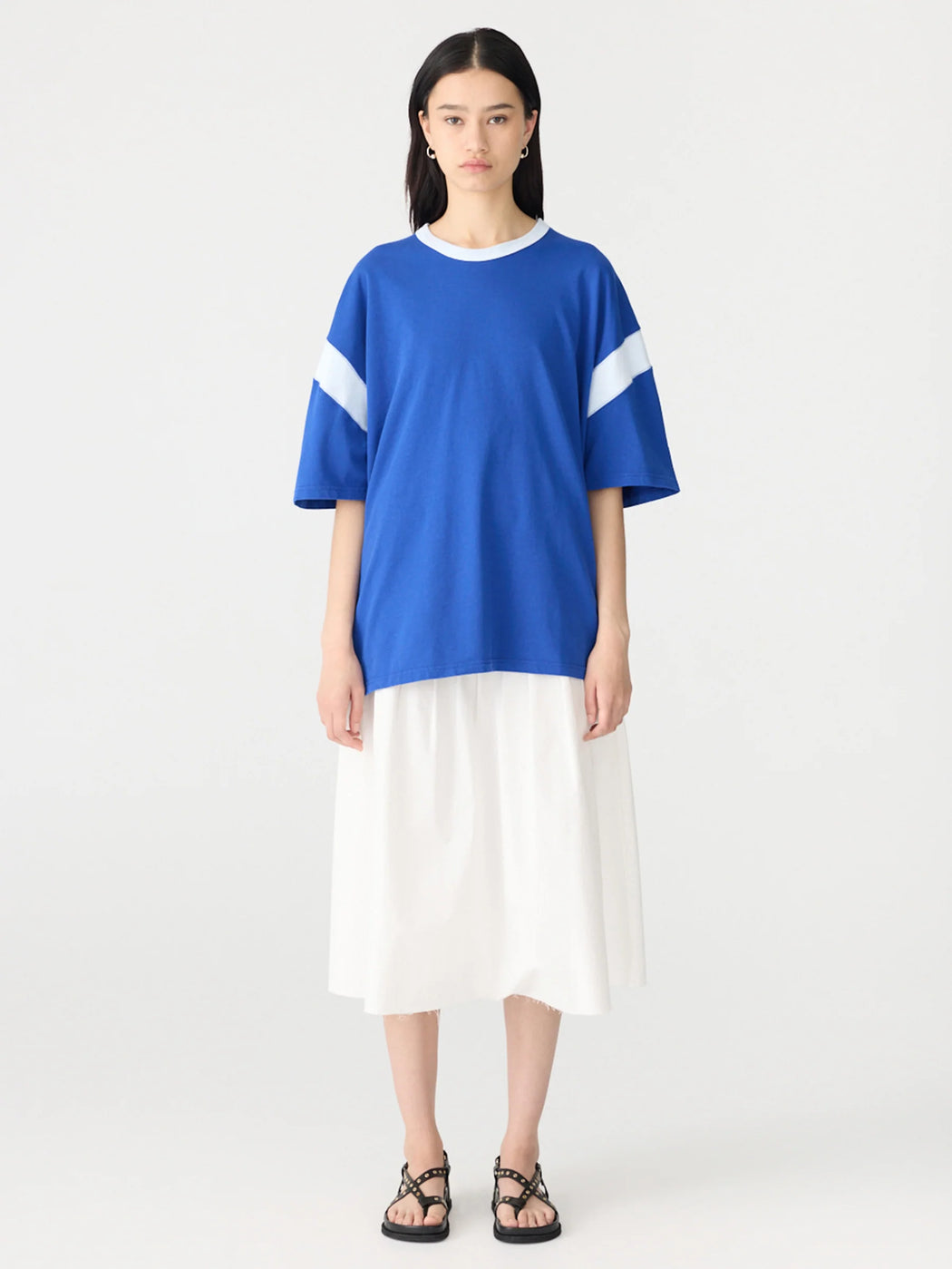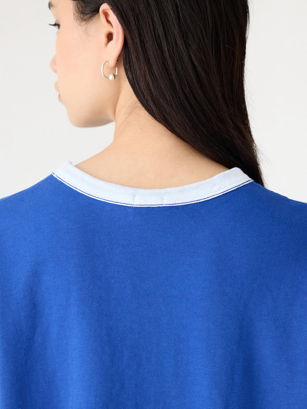 BASSIKE O/S RIB DETAIL T.SHIRT COBALT/PALE BLUE