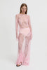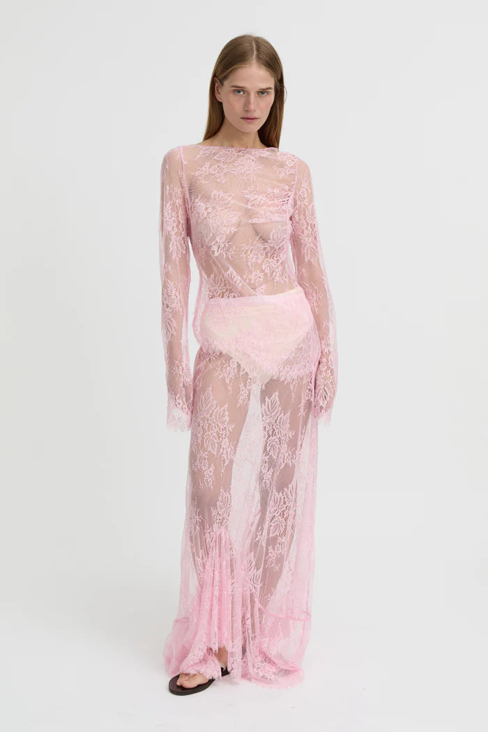 The Giselle Lace Top in Pink channels timeless femininity through delicate floral lace. Designed with long sleeves and a refined bateau neckline, its sheer construction makes it ideal for layering—striking the perfect balance between delicacy and statement appeal.