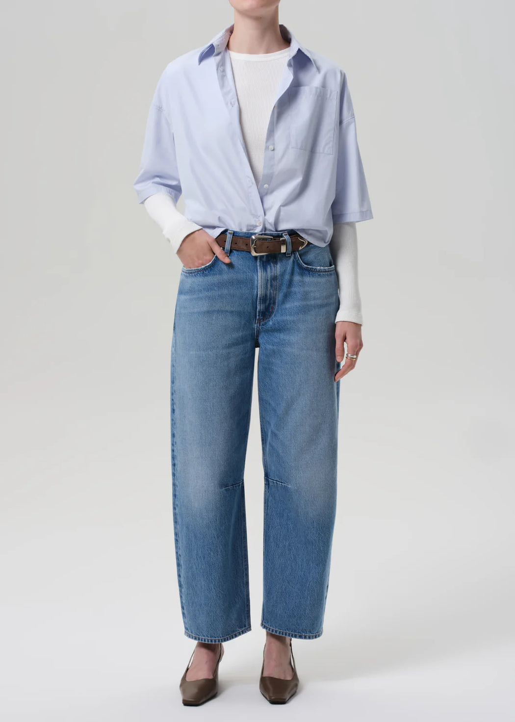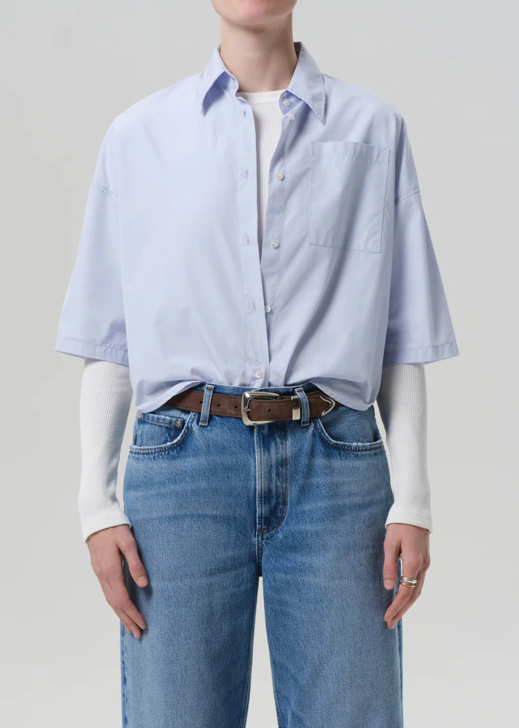 CITIZENS OF HUMANITY FRANCES CROPPED CAPE BUTTON UP BABY BLUE