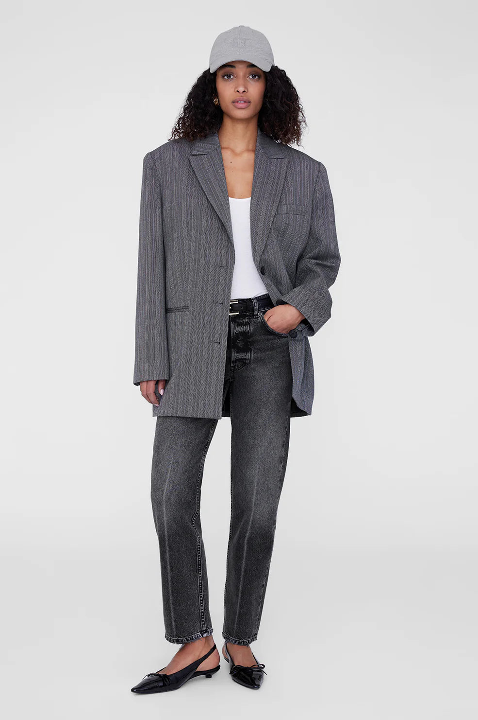 ANINE BING JEREMY BASEBALL CAP FRAMED MONOGRAM HEATHER GREY