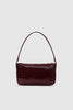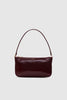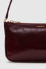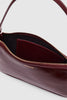 A compact shoulder bag made from soft 100% leather in a rich burgundy with a slight sheen and crinkled patent finish.