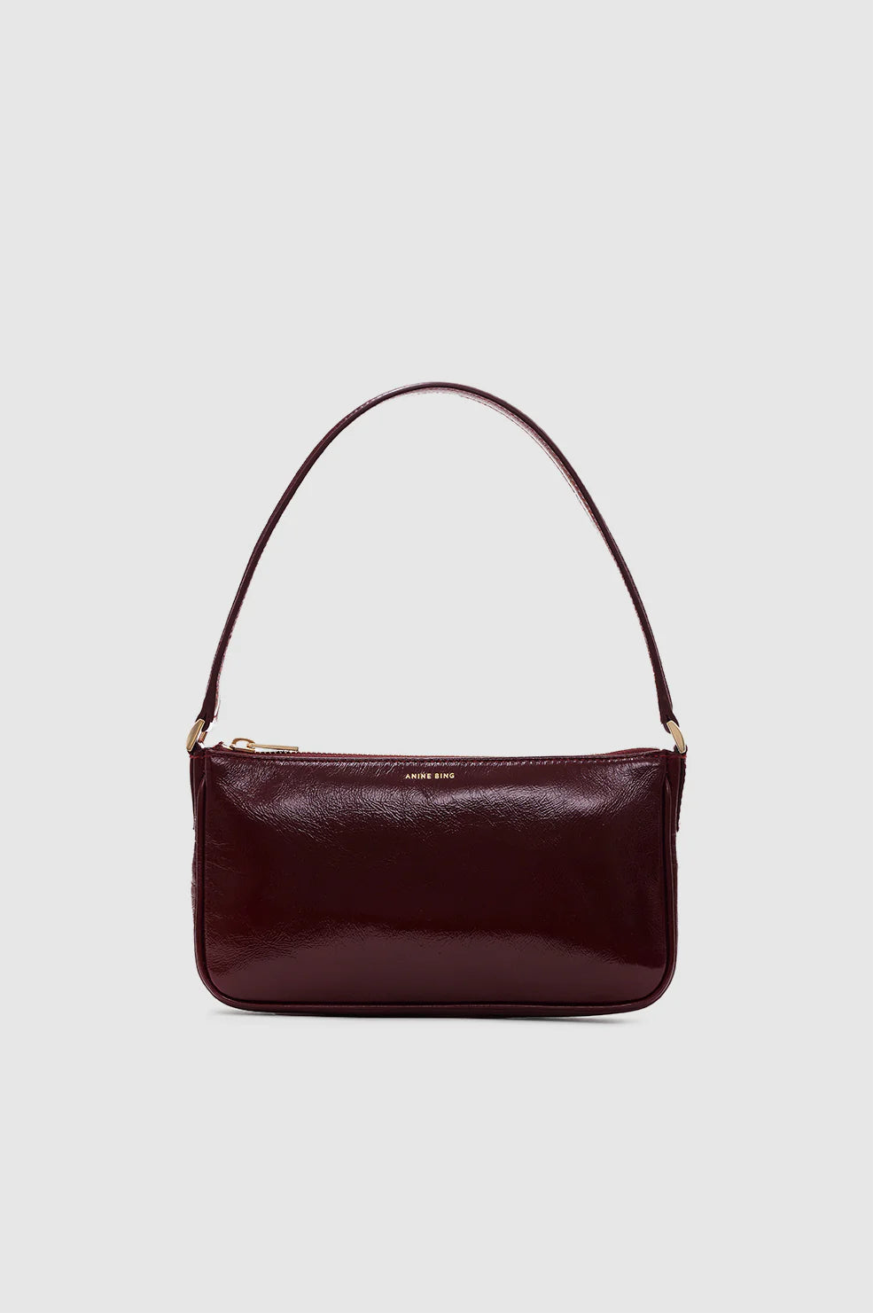 ANINE BING MINI ELLY BAG OXBLOOD CRINKLED PATENT