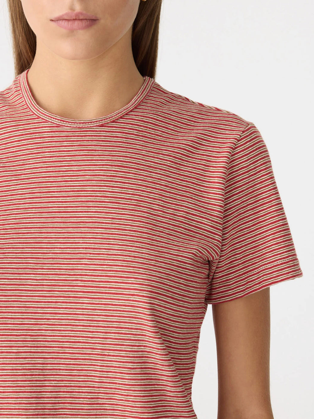 The Stripe Heritage T-Shirt is a refined essential designed with a slim, close fit. Crafted from Japanese stripe jersey, this piece features a classic crew neckline and a clean, straight hem for an elevated everyday finish.