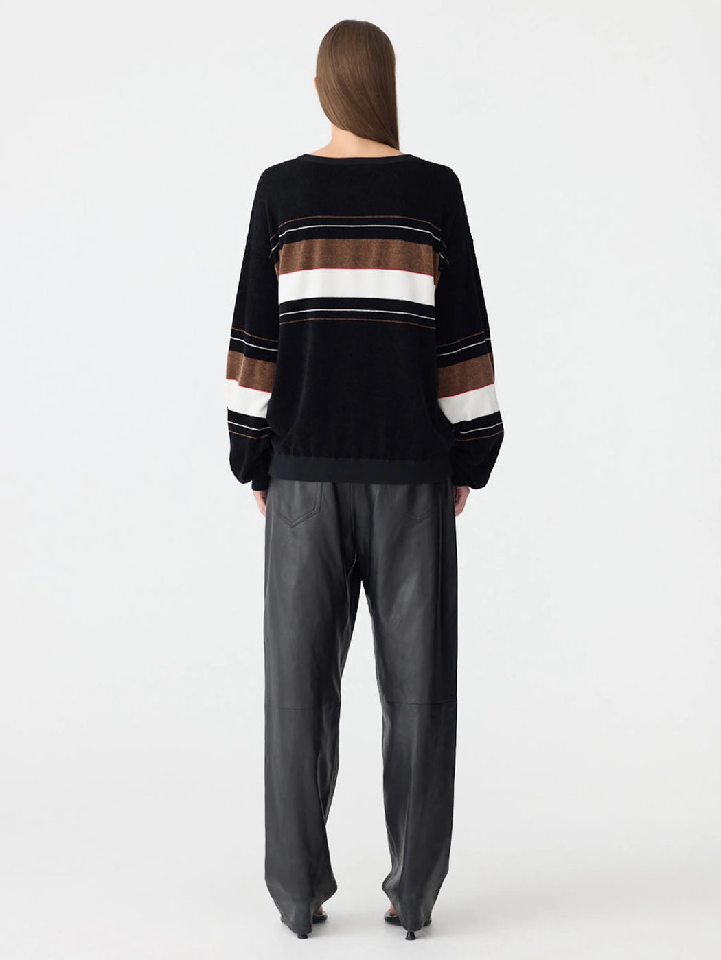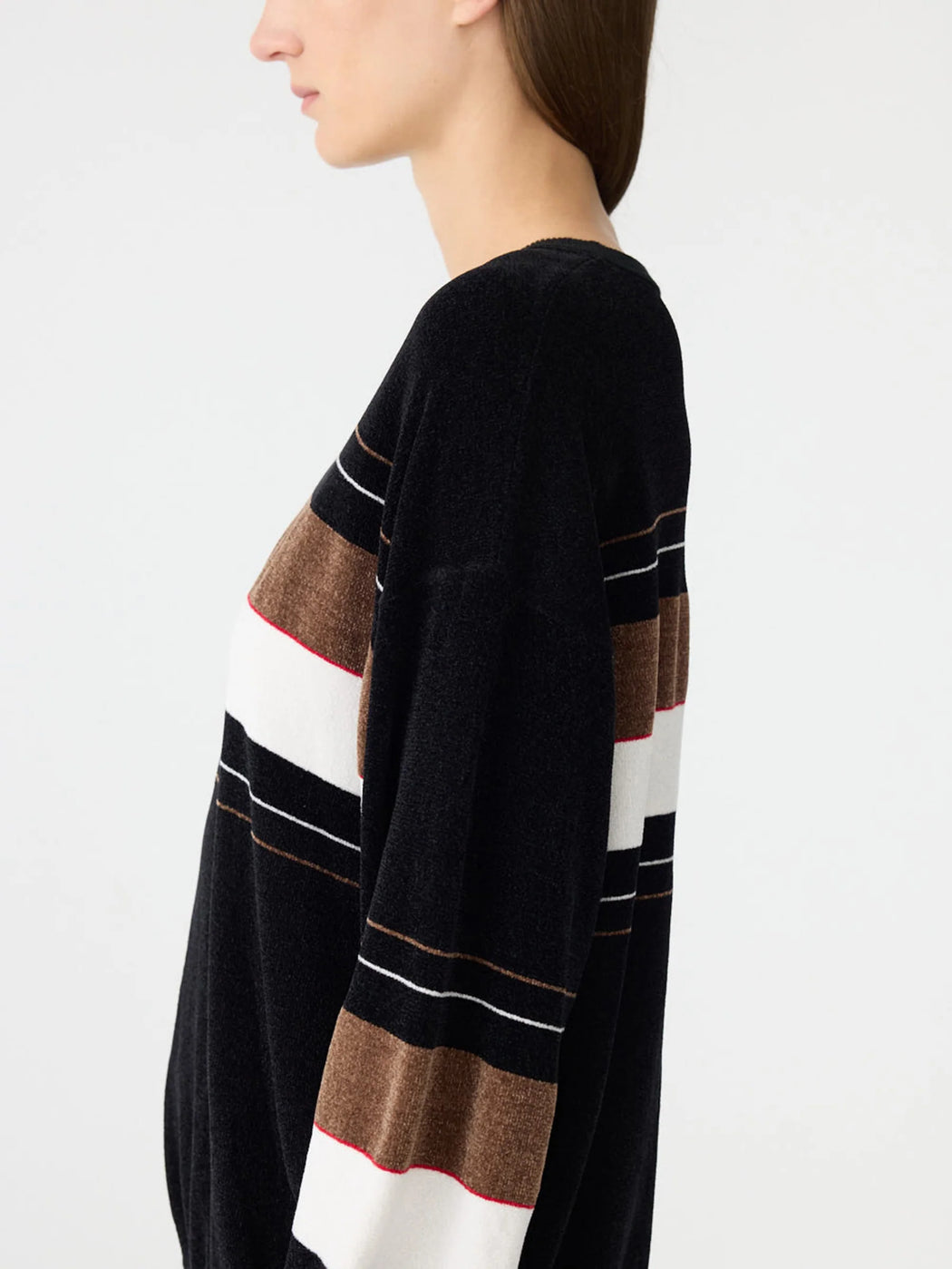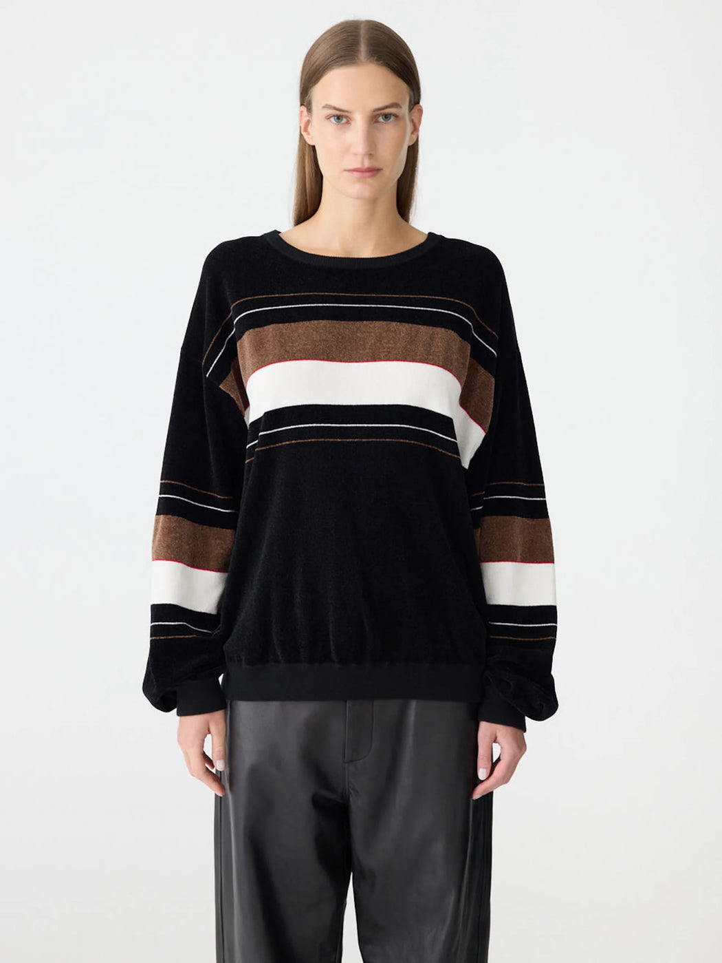 BASSIKE VELOUR CREW NECK KNIT BLACK/BROWN/NATURAL