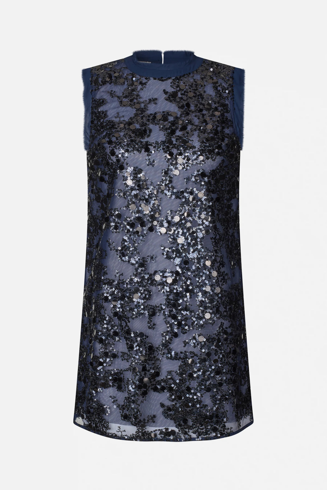 The Anira Dress is made in a shimmering sequins design that makes a shining statement. The sleeveless mini dress has a relaxed fit with a flattering crew neck and frayed edges at the neckline and shoulders. It has a mesh lining underneath the sheer sequins layer for some extra coverage. Perfect for special occasion - or perhaps your next event.