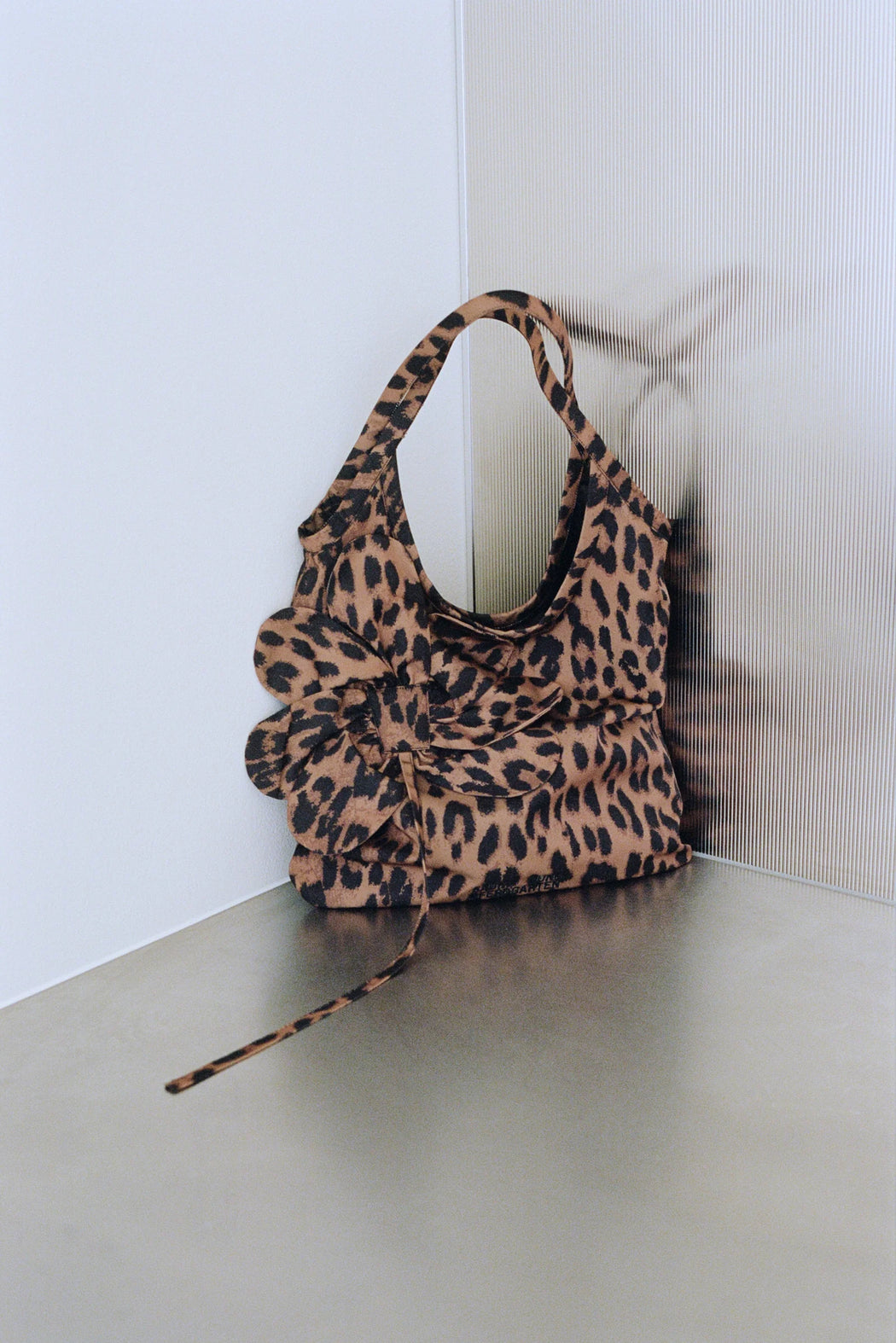 The Keanna Bag is a shoulder bag made to make an impression with its stand-out flower piece at the front of the bag. The embroidered logo adds subtle detail, while the magnetic closure at the top keeps your essentials secure. The bag is made in recycled polyester in our Baum leopard print – A statement classic in the making.