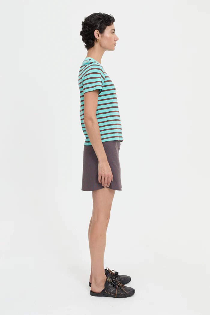 Crafted from lightweight cotton jersey with a smooth finish. Finished with a ribbed neckline and short sleeves.