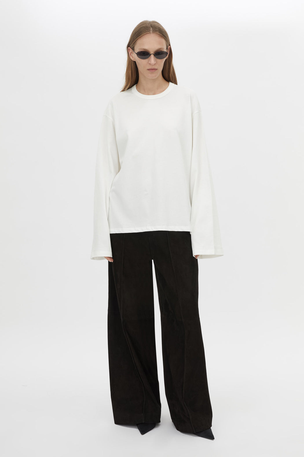 CAMILLA AND MARC Peretti long sleeve tee in white with wide shaped sleeves. Ribbed neckline.