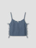 a lightweight cami featuring a soft v neckline at the front with a subtle keyhole detail and fine button closure. designed with slim straps and adjustable drawcord channels through the armholes with a functional tie underarm