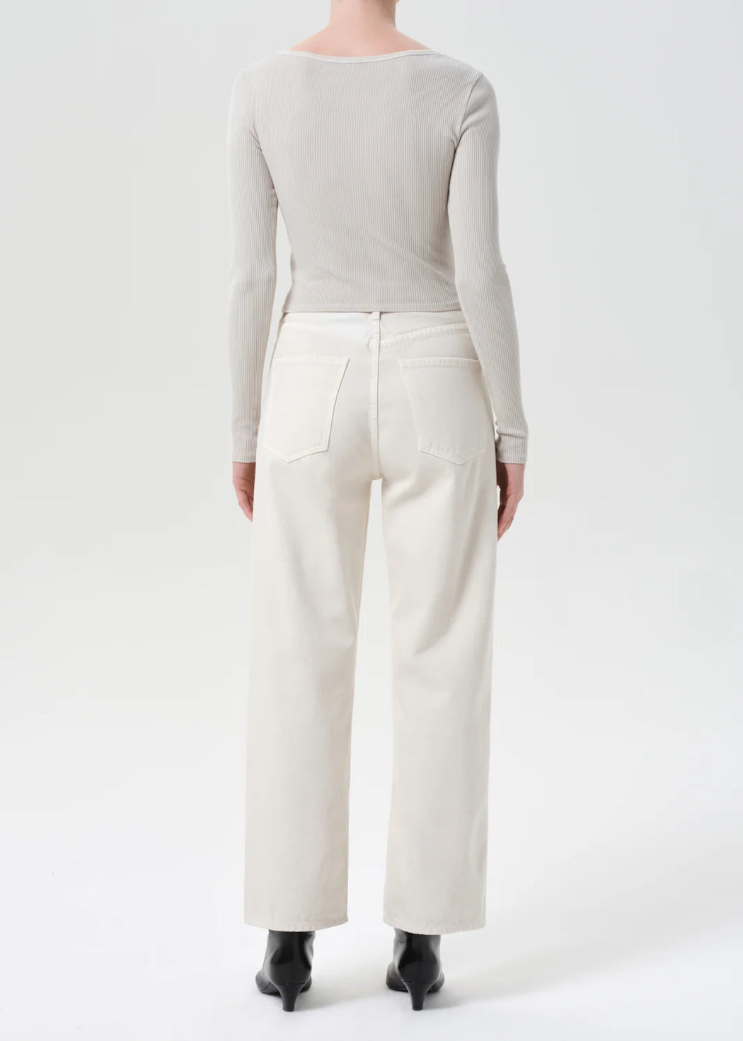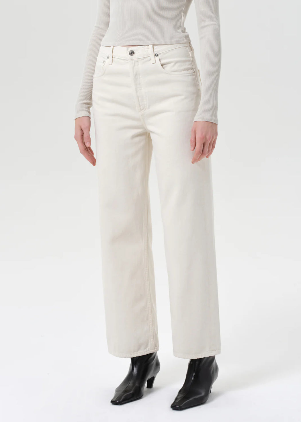 AGOLDE’s Ren Jean offers a clean, elevated take on the classic wide-leg silhouette. Crafted from 100% rigid, non-stretch regenerative cotton, these high-rise jeans feature a warm, light beige tone that adds a subtle yet sophisticated touch to your wardrobe. The cropped wide legs create a relaxed yet flattering fit, while the heavyweight denim with a soft hand ensures durable comfort for all-day wear. Style them with a fitted tee or chunky boots for an easy, polished look.