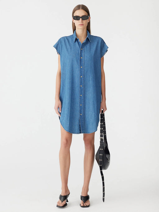 LEE MATHEWS LM POPLIN V NECK DRESS MUSK PINK