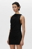 CAMILLA AND MARC Ashen black wrap mini dress with cowl neckline. Draping at waist, fully lined. Centre back concealed zip.