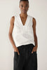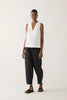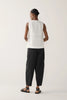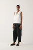 These pants feature an elasticated waistband with a cord tie, creating an easy, adjustable fit. The tapered cropped leg gives a modern silhouette, while the side pouch pockets add both functionality and a utilitarian edge. Crafted from a structured yet lightweight organic poplin, they balance comfort and polish - perfect for everyday wear with a minimalist sensibility.