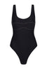 INNES LAUREN Contrast Stitch One Piece is crafted from recycled Italian fabric ECONYL® in a ultra soft black matte fabric.