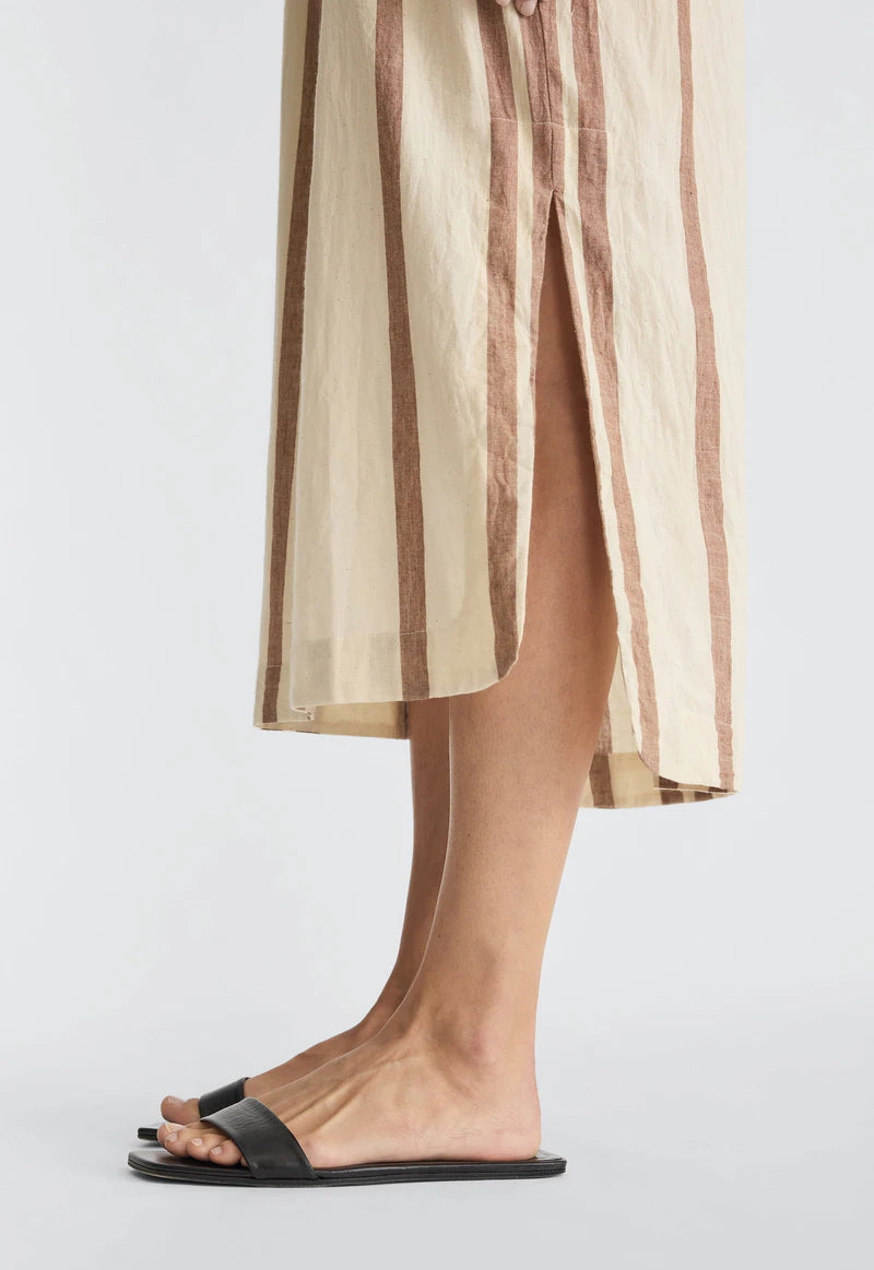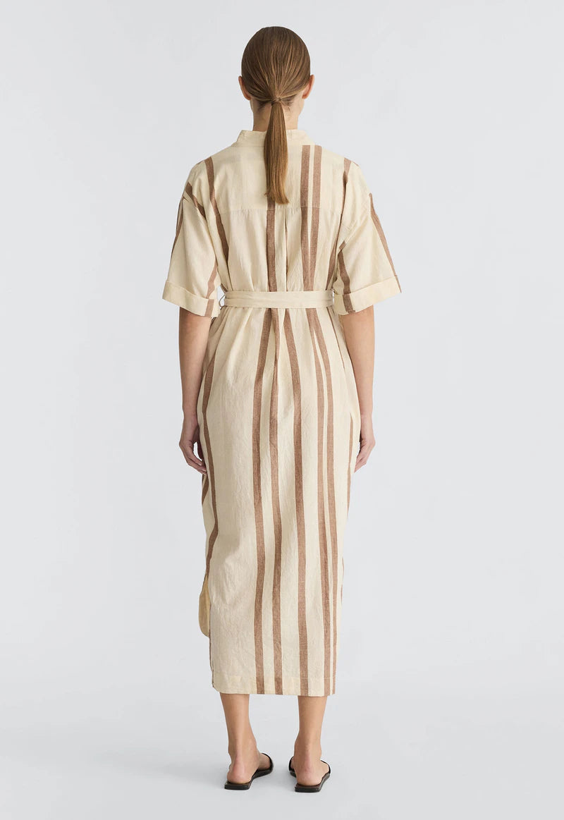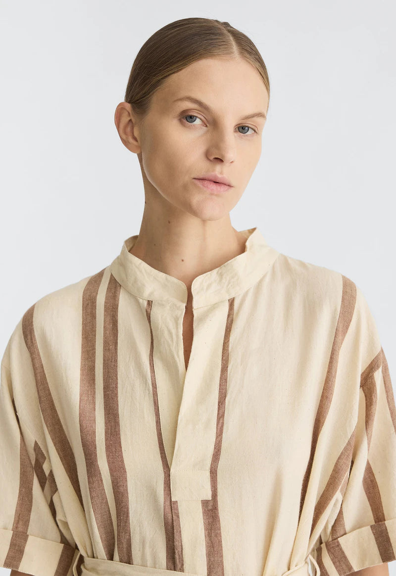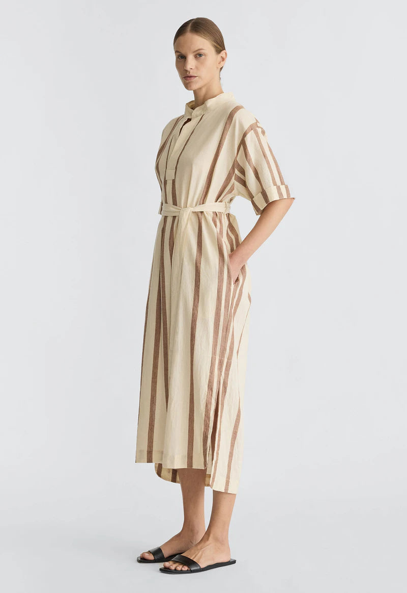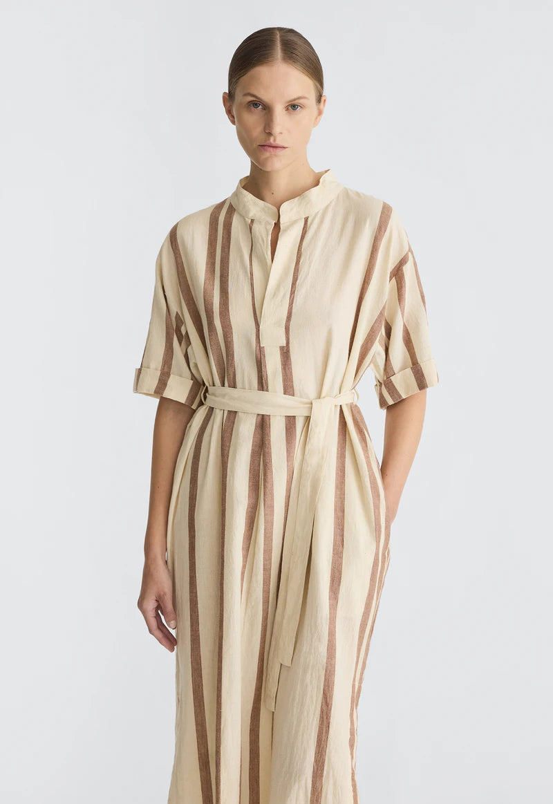 A warm weather inspired take on the classic shirt dress in handloom cotton. We are proud to have partnered again with skilled artisans in India using time-honoured techniques that celebrate slow, intentional making. With its straight fit, optional waist tie belt and minimalist design, it offers fun, effortless wearability while maintaining a polished edge. Perfect for everyday ease.