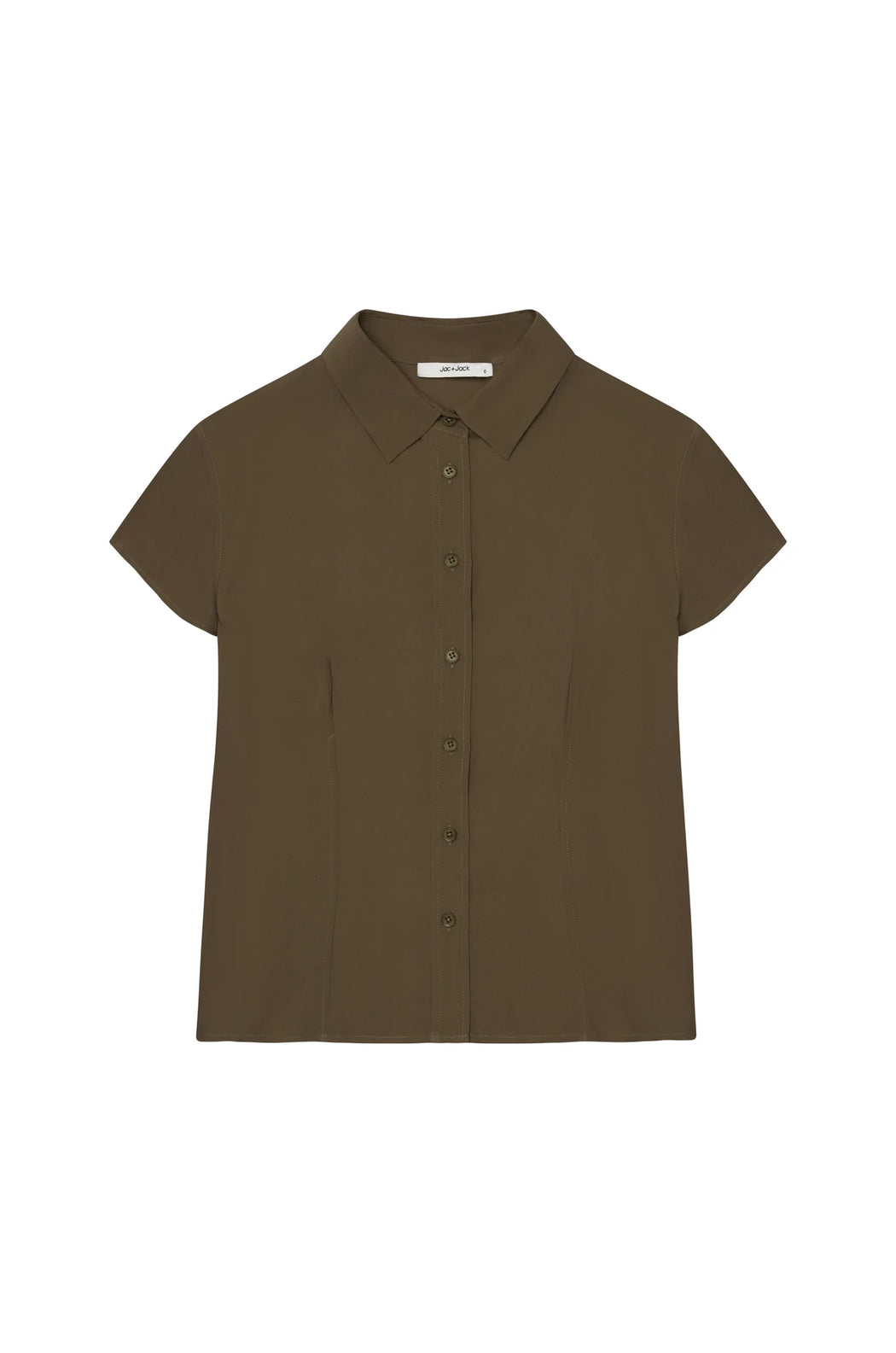 - Dart shaping at front and back, cap sleeves, button-down placket with functional buttons