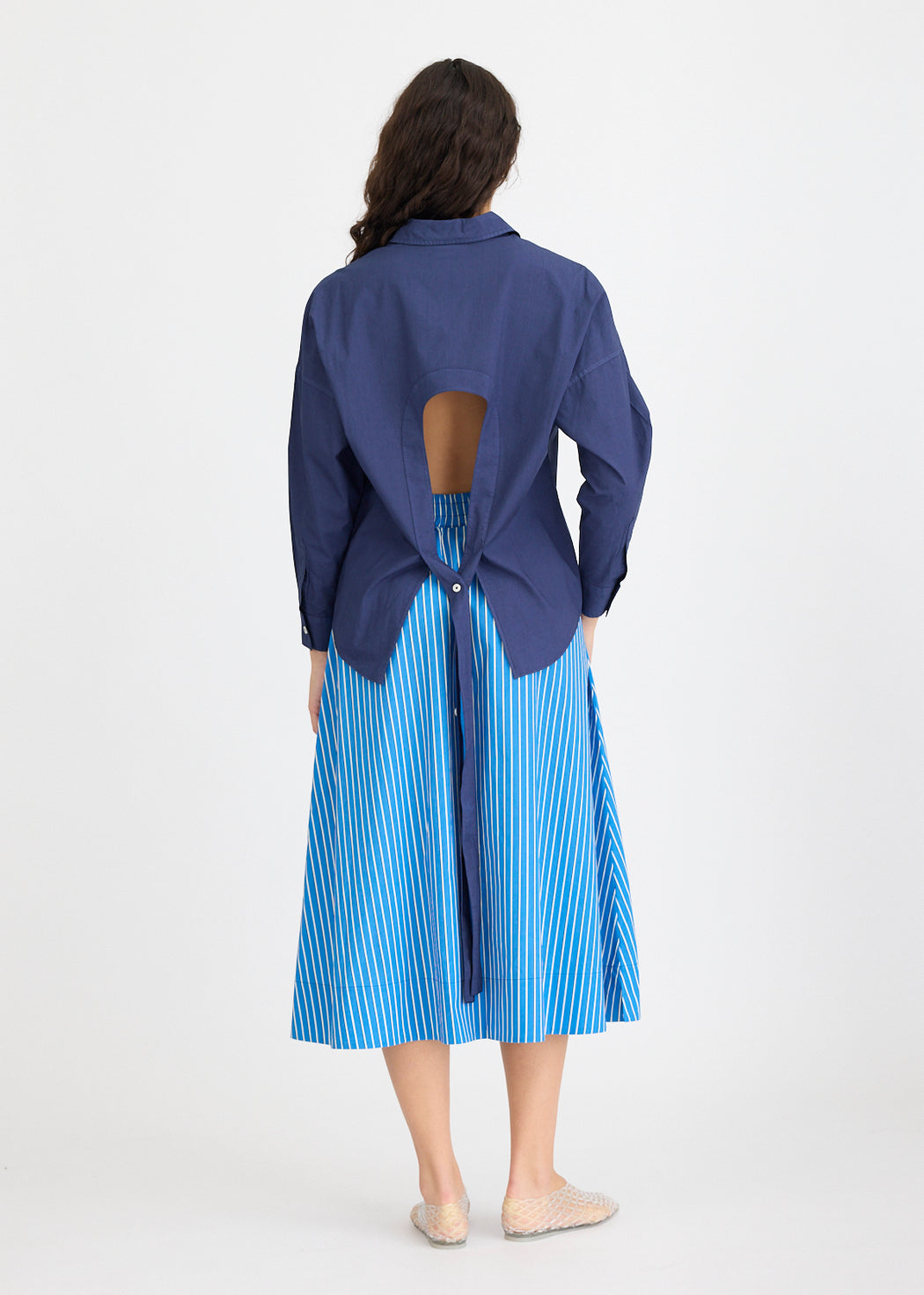 All the effortless ease of the signature Chiara Shirt, with an unexpected twist. The Chiara Backless Shirt features the same crisp silhouette and lightweight cotton poplin you know and love, now updated with an open back and adjustable tie detail. Designed to be styled your way, layered, tucked, or worn solo, it’s a statement piece that still feels classic.