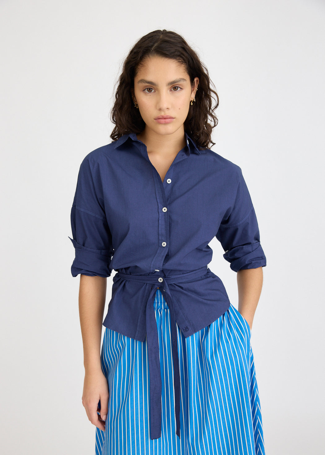 LMND CHIARA LONG SLEEVE SHIRT BACKLESS NAVY