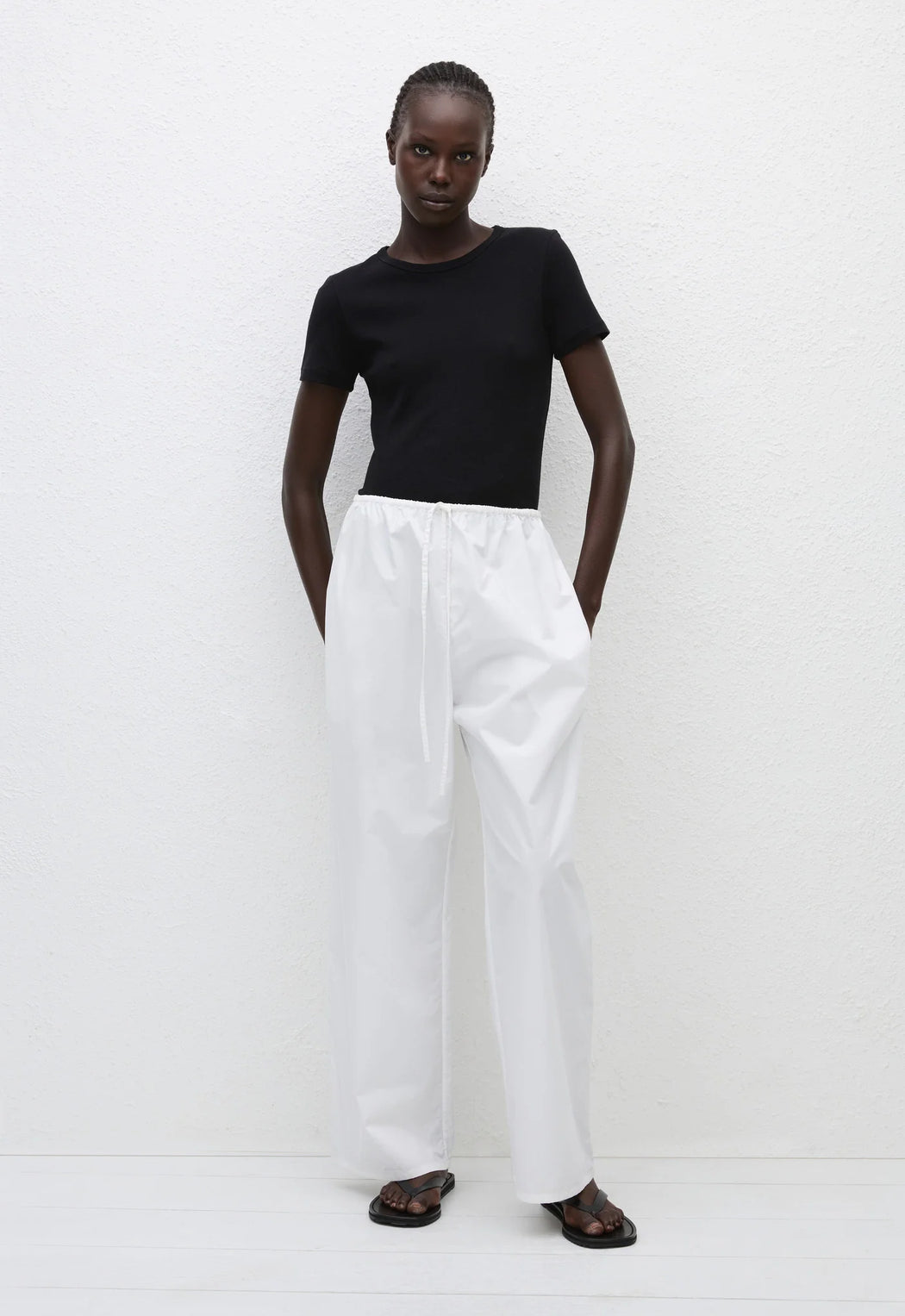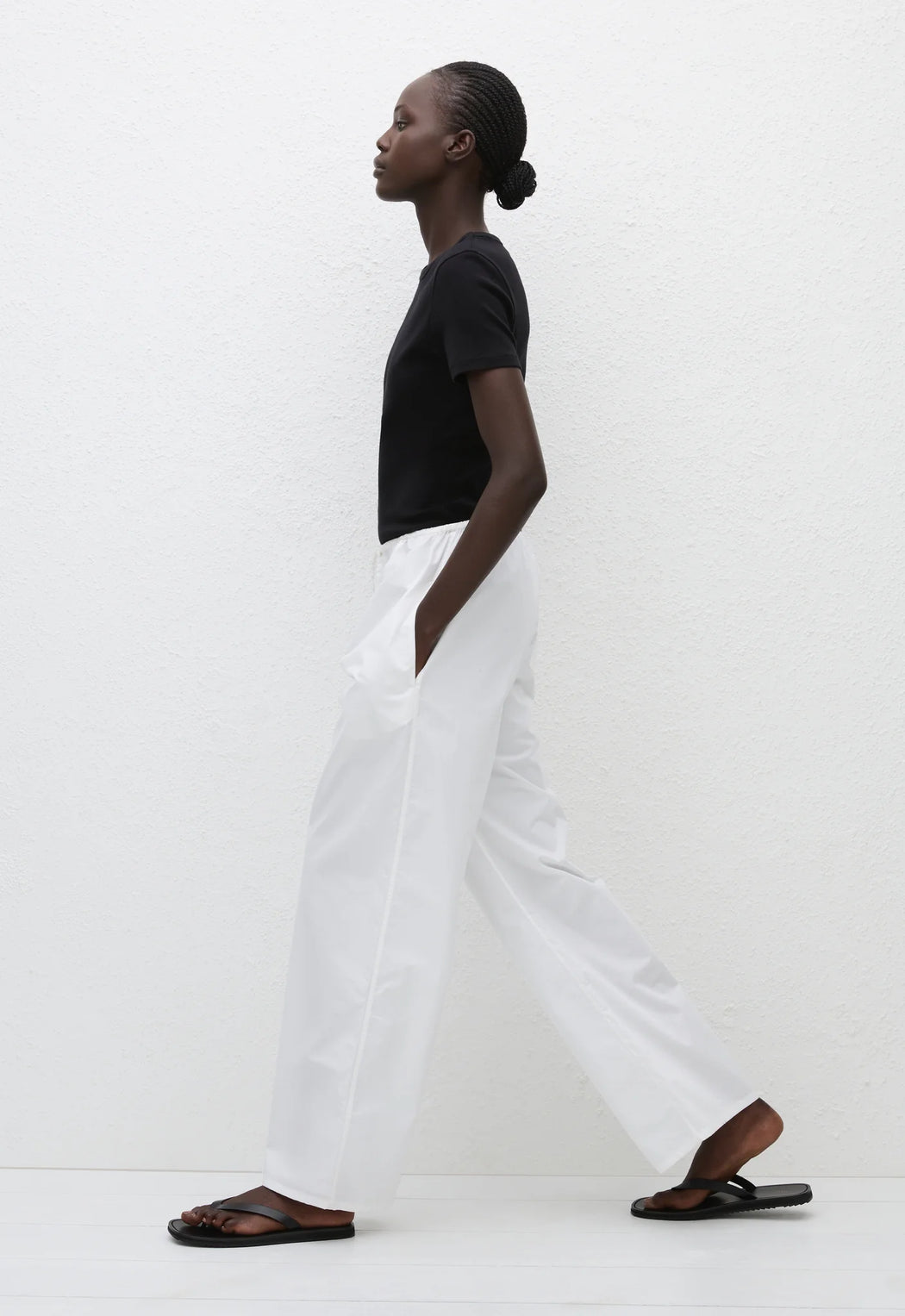 An everyday baby tee featuring a crew neck and flattering short sleeves. Made from 100% cotton, this tee features a self bound detail around the neck, and a coverstitch hem finish on the sleeve and body. Wear tucked in with our Long Chino Short or Relaxed Jean and pull together with our Boyfriend Belt.
