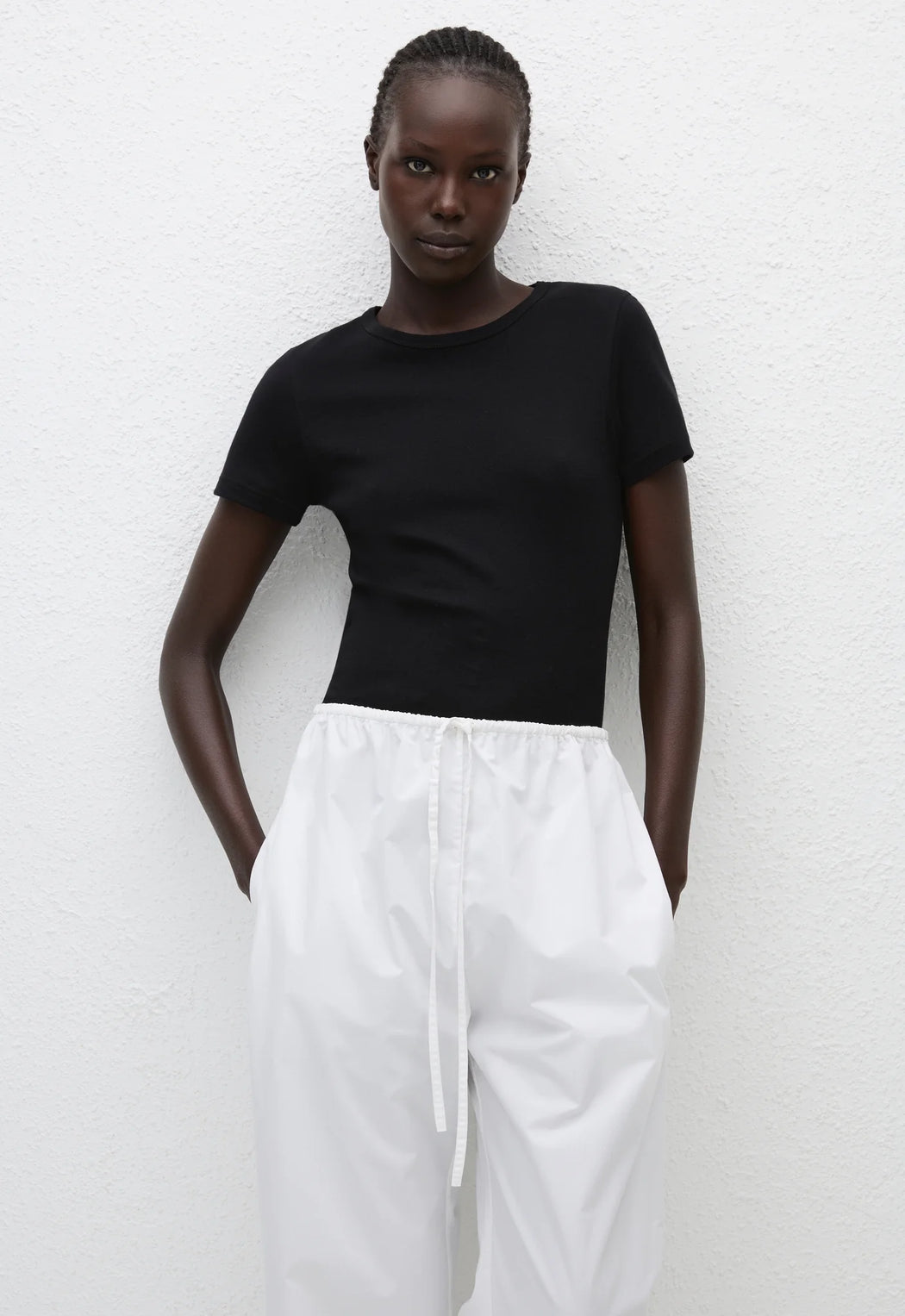 Achok is 177cm and wears the Baby Tee in Black in a size 2. This style is designed to be a tight fit, if you prefer a looser fit we recommend sizing up.