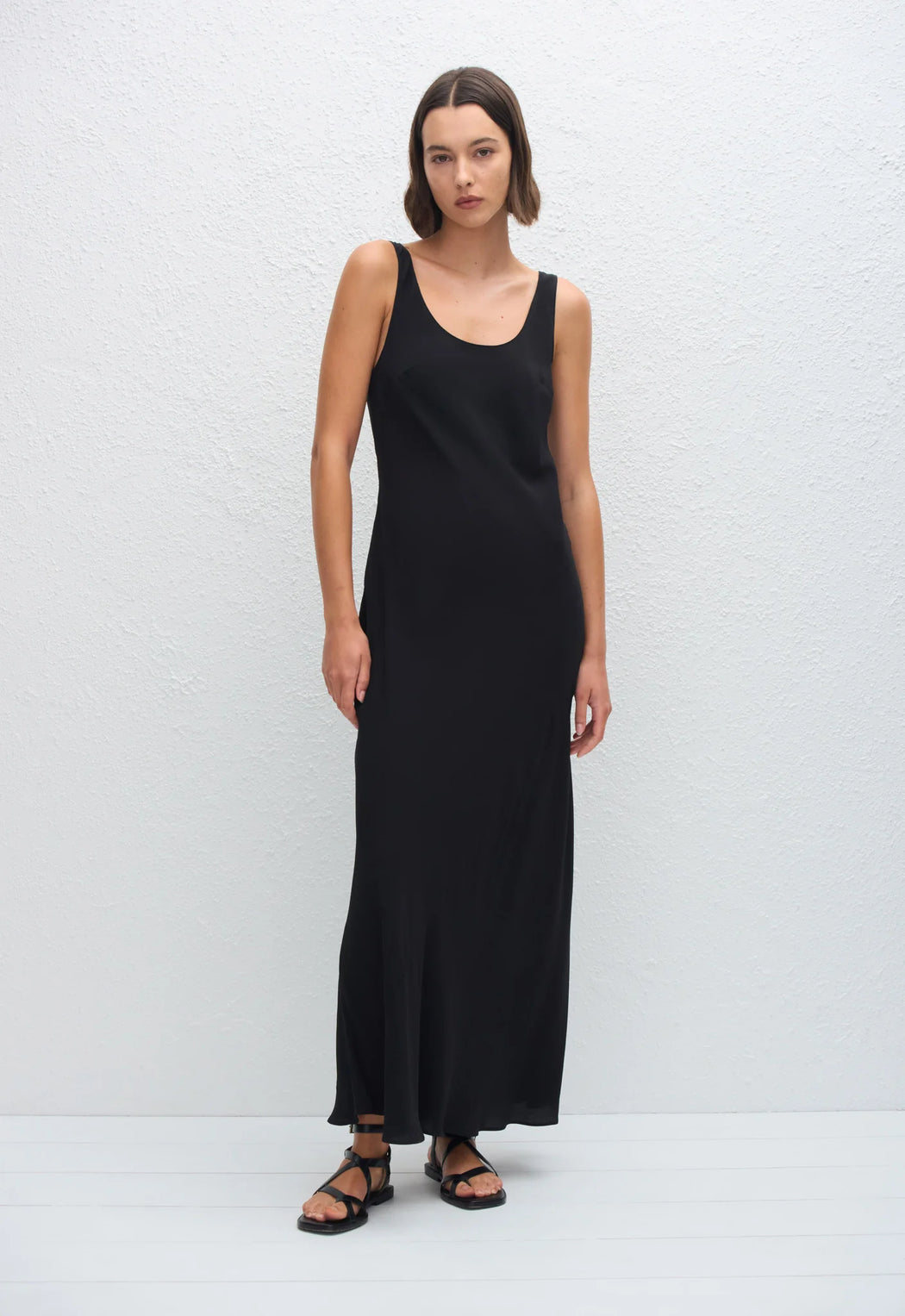 Introducing the Bias Tank Dress. This elegantly relaxed silhouette is made in lightweight silk crepe de chine and is designed to skim the body. Perfect for your next summer escape or event under the sun.