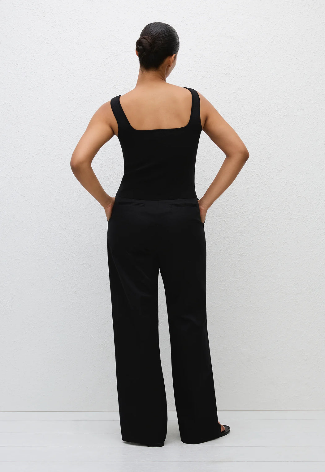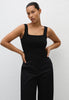 Inspired by a timeless 90s silhouette, this square neck tank is an elevated alternative to your favourite tank top. Offered in a bandage knit dry handle viscose for a perfect contoured fit. Easy with jeans and elegant with our Straight Twill Trouser.