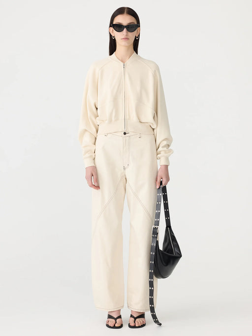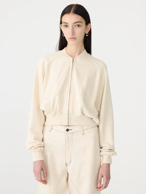 BASSIKE FLEECE ZIP UP BOMBER JACKET ECRU