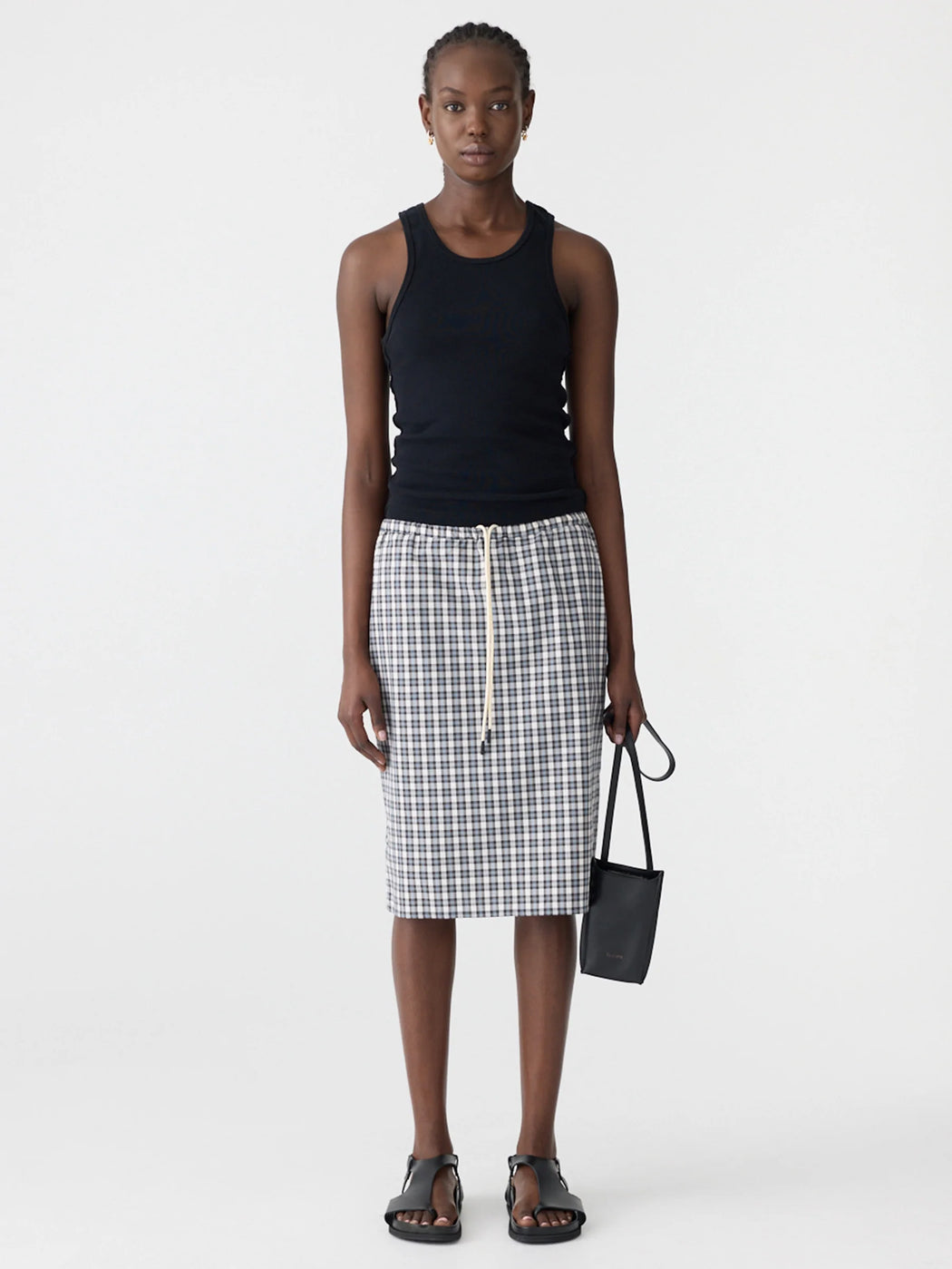 The Yarn Dyed Check Pull On Skirt is crafted in a 100% cotton, designed with a thin elasticated waistband and sporty drawcord for an adjustable fit. Knee-length with a lightweight, soft feel texture for effortless layering.