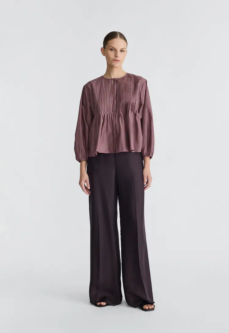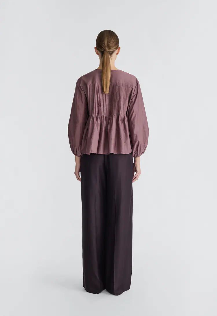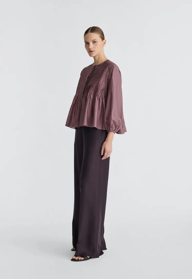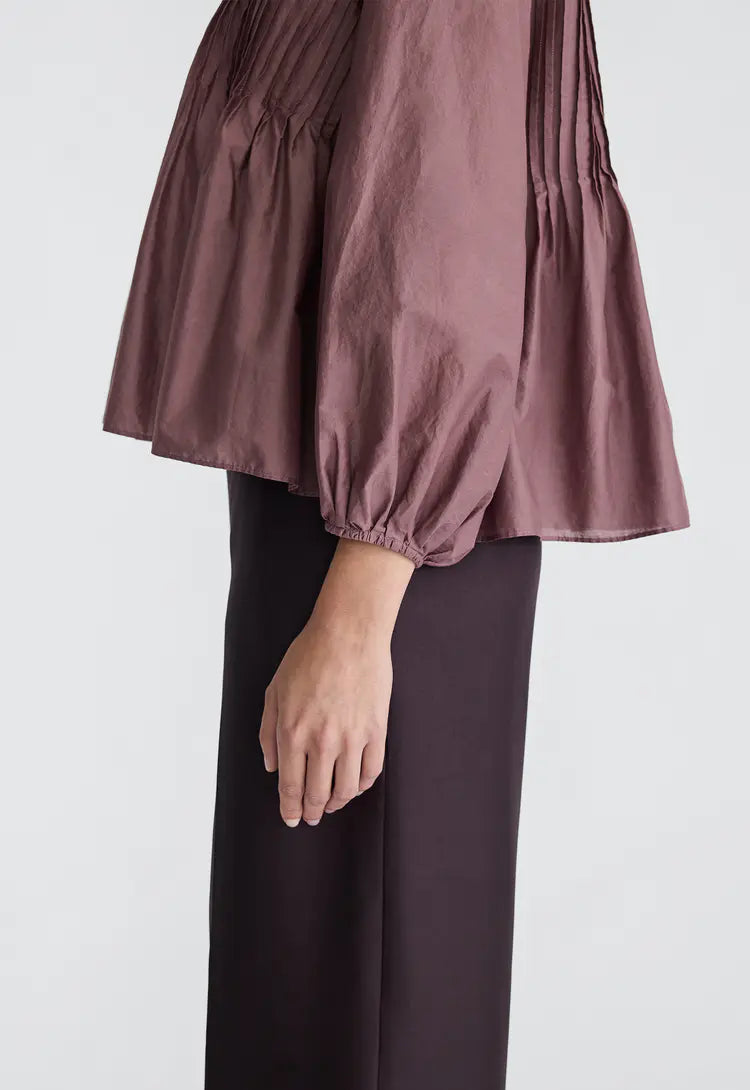 Light and romantic, this cotton top features billowed sleeves and a gently fluted hem for a soft, feminine silhouette. detailing through the front adds subtle texture and a touch of vintage charm. Breezy yet polished, it’s an effortless piece to elevate everyday dressing.