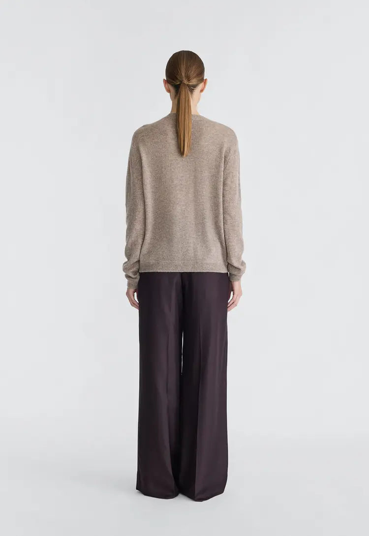 Our signature lightweight women's cashmere sweater is the ultimate transeasonal essential. Made from luxuriously soft cashmere, it's designed to be worn on its own or layered with ease. Featuring a fine crew neckline and a relaxed silhouette that falls at the hip, this versatile piece blends comfort with understated elegance. Pair it with fluid silk trousers or a simple skirt for an effortlessly refined everyday look.
