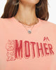 A soft crewneck with a slim fit for a vintage look and feel. Made from 100% supima cotton in peach, the tee features a small cat and MOTHER's name in red on the front.