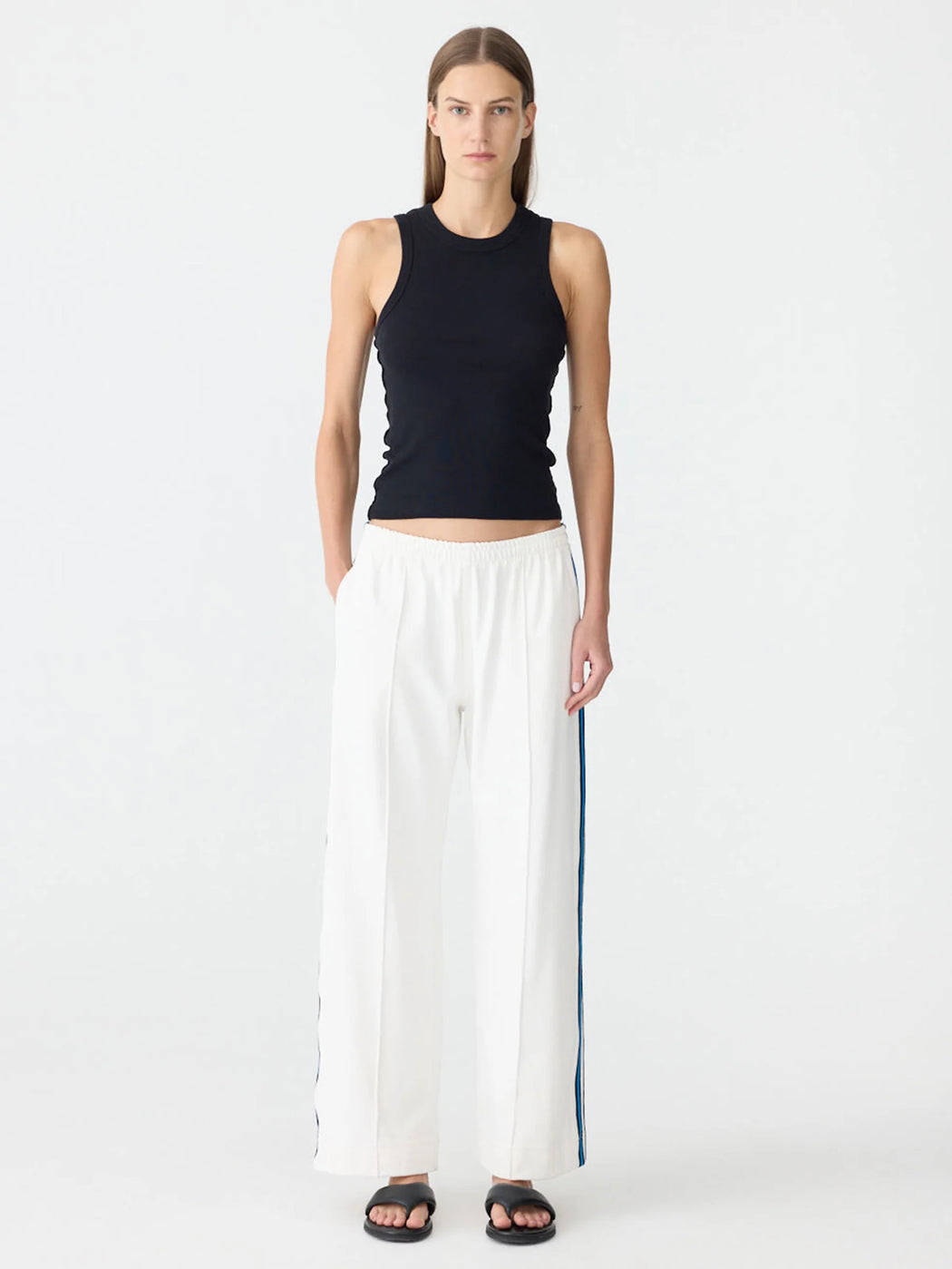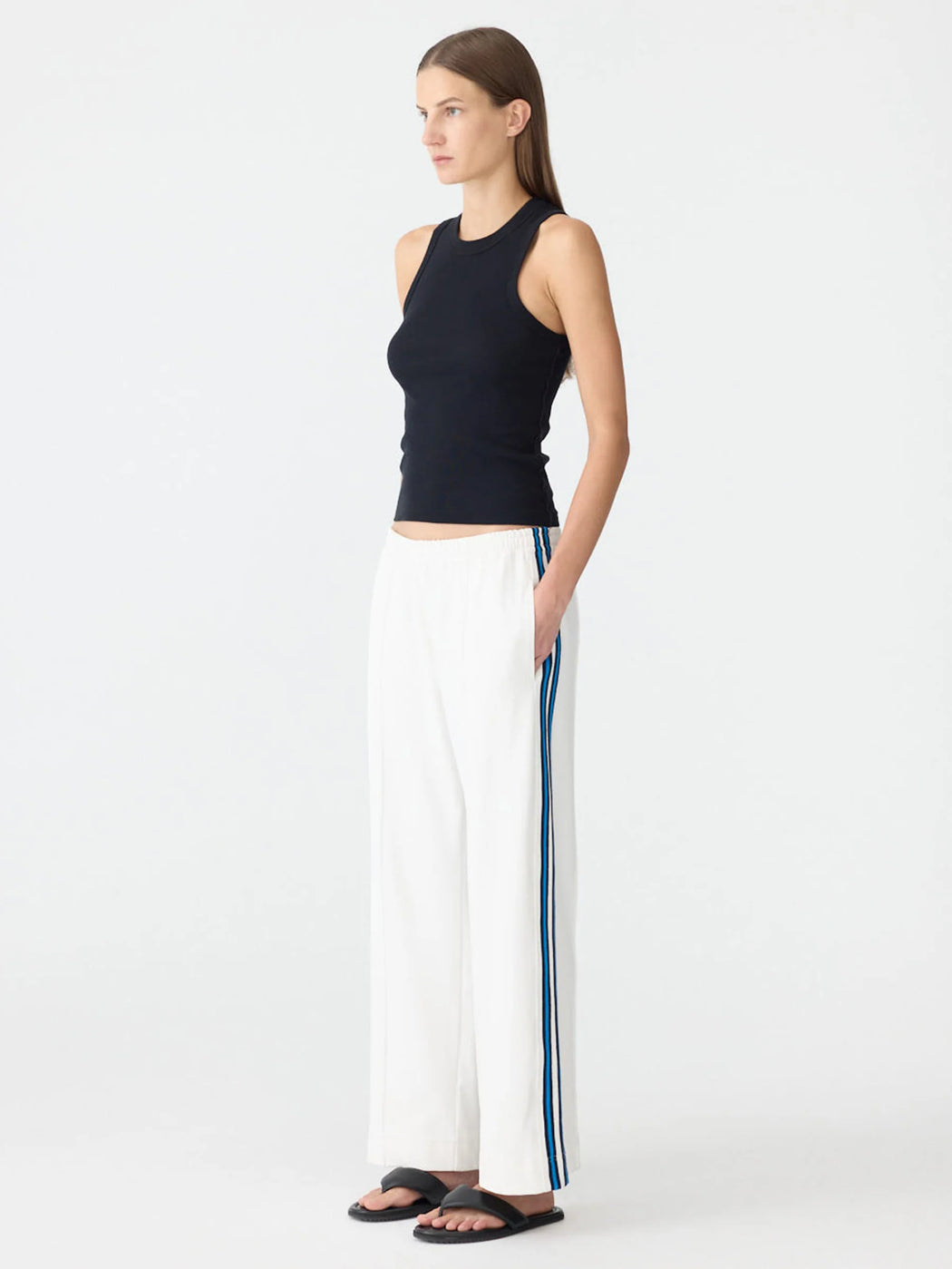 BASSIKE DOUBLE STRIPE WIDE LEG PANT WHITE/COBALT AND INK STRIPE