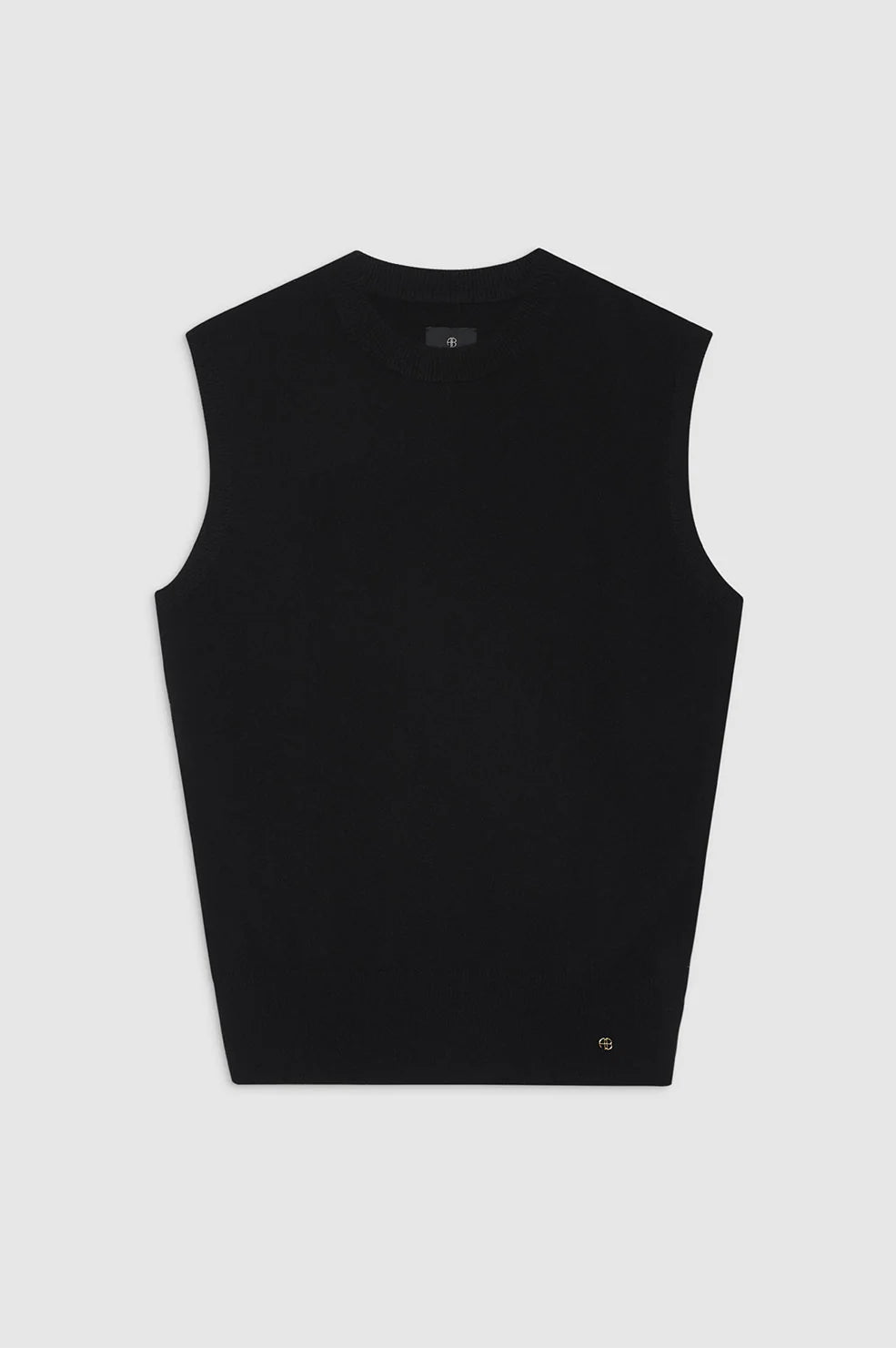 The Ronan Sweater is crafted from luxuriously soft 100% cashmere with natural drape. This knitted vest features a clean crew neckline and dropped armholes for versatile styling. Finished with a small stitched ANINE BING monogram charm at the hem.