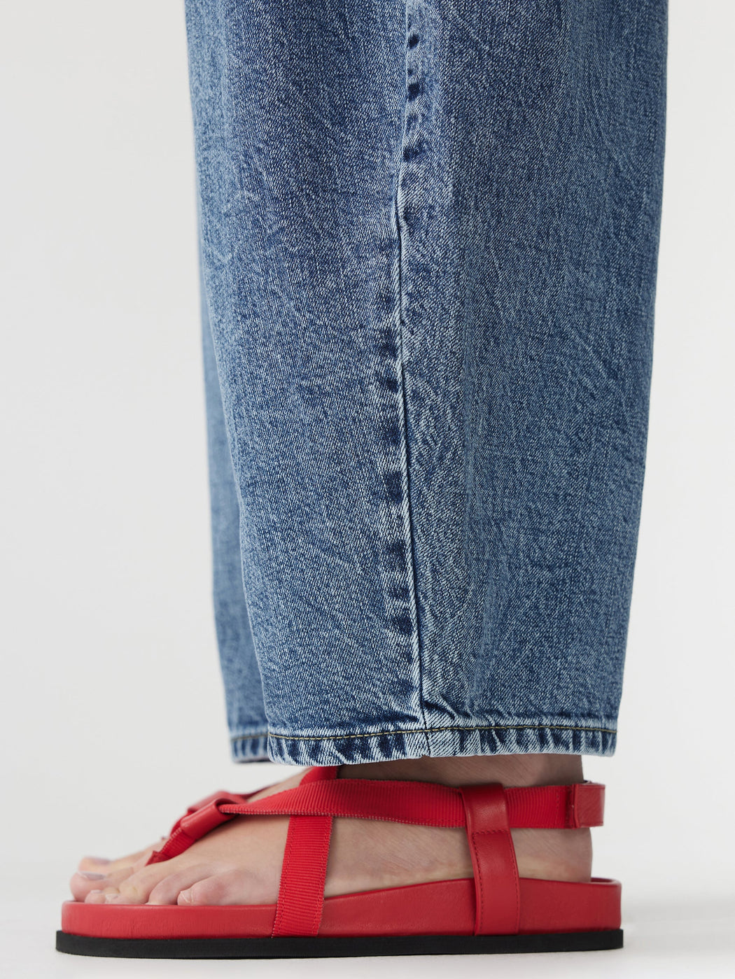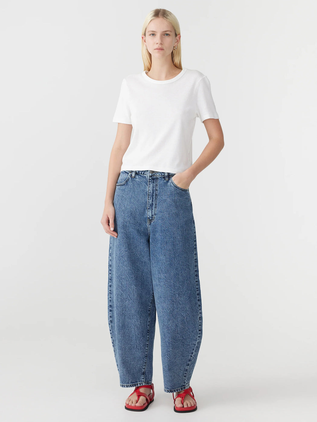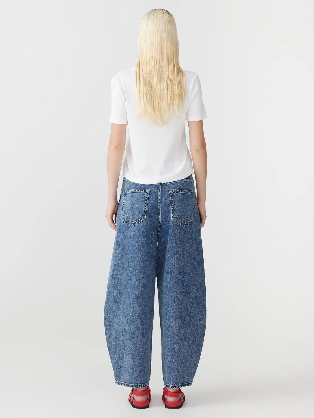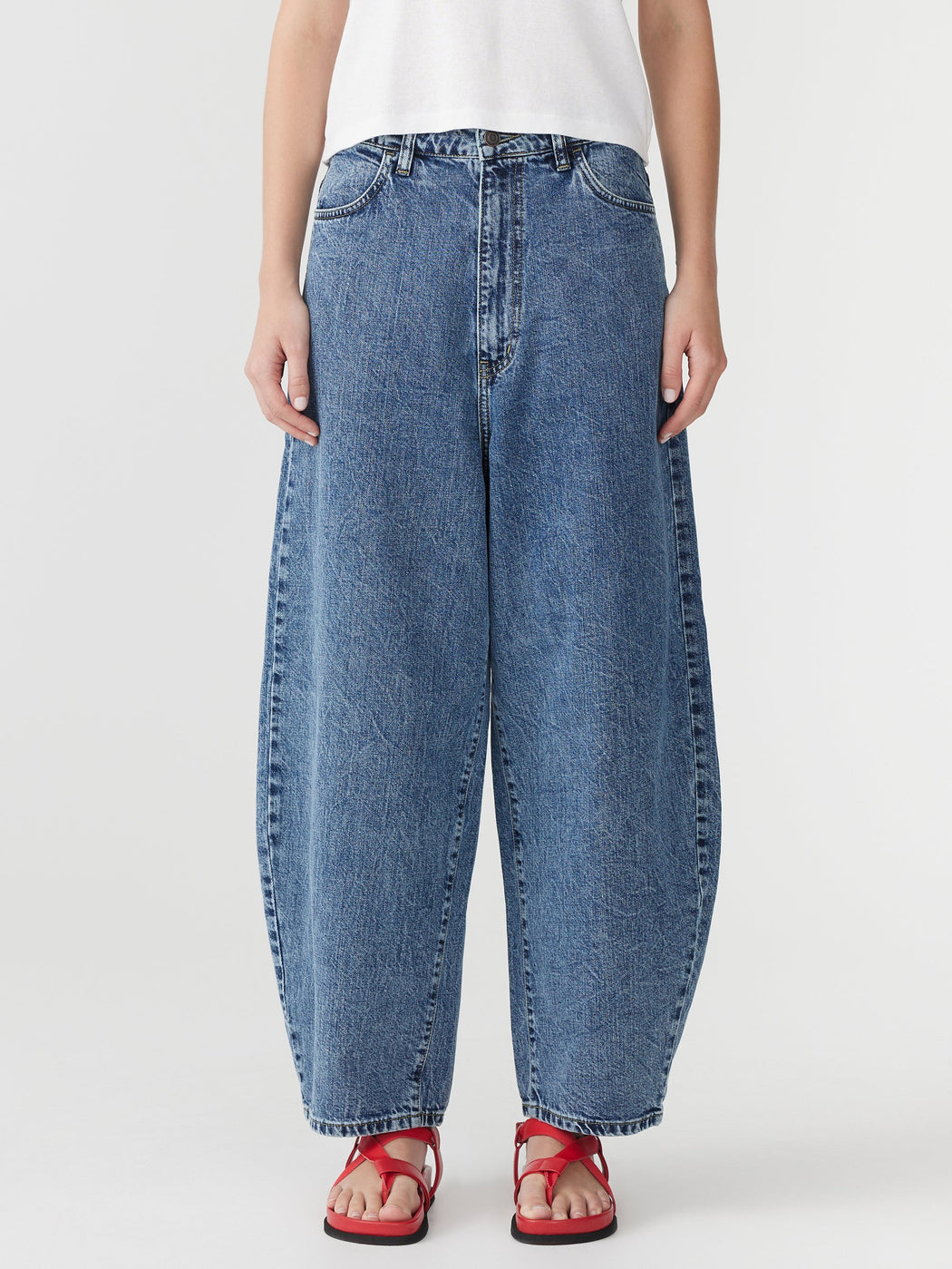 Crafted in premium Japanese denim, the Barrel Leg Jean is designed for an voluminous, tapered fit. A contemporary take on the traditionally slouchy pant, this high rise style features a curved silhouette throughout the leg. Complete with a classic jean style front fastening, side entry pockets and rear patch pockets.
