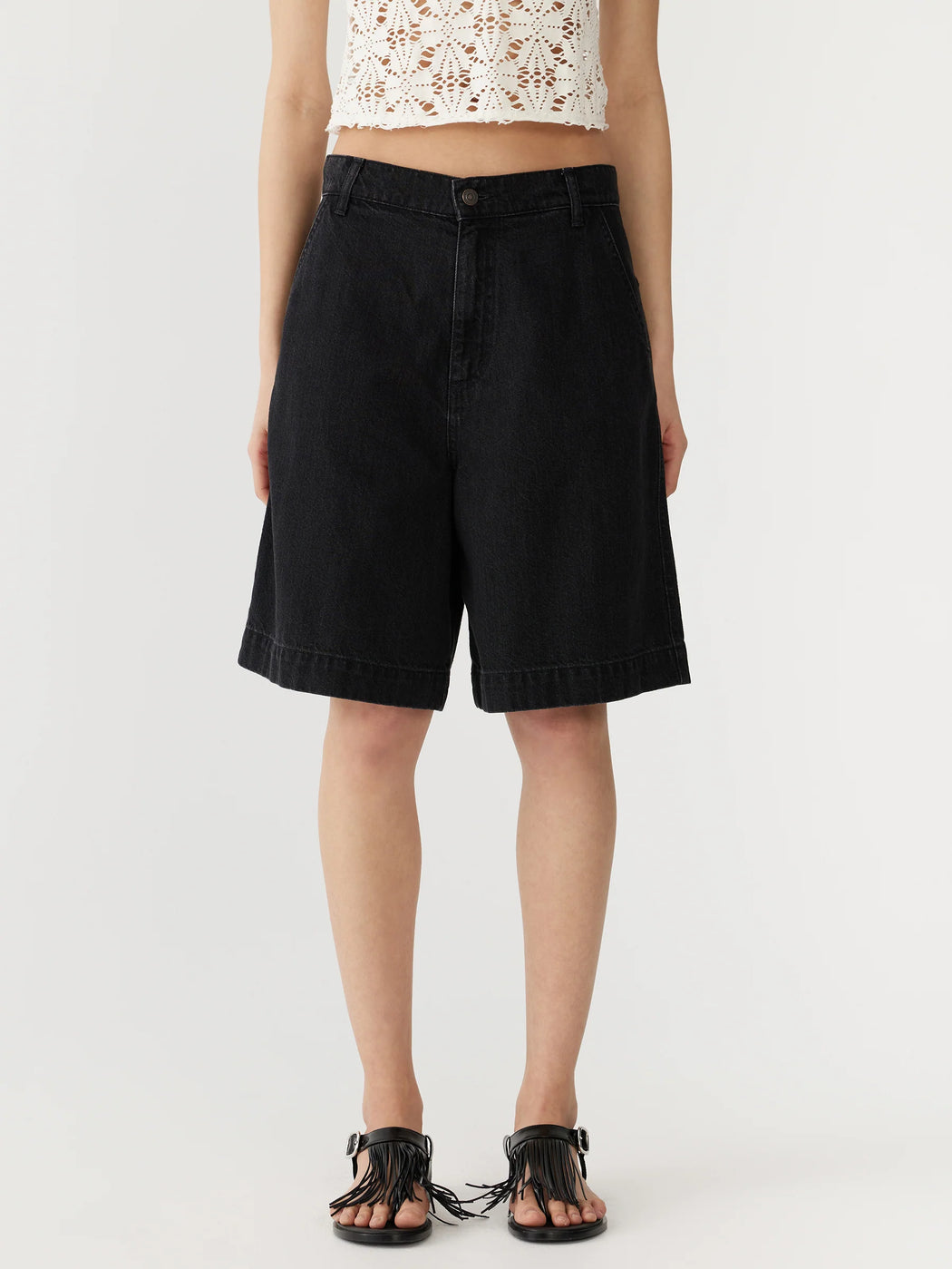 BASSIKE DENIM BERMUDA SHORT WASHED BLACK