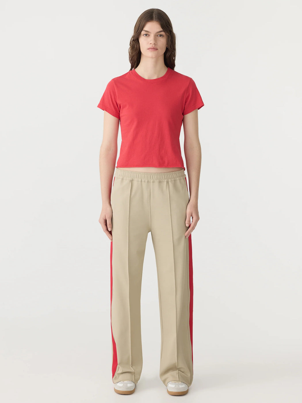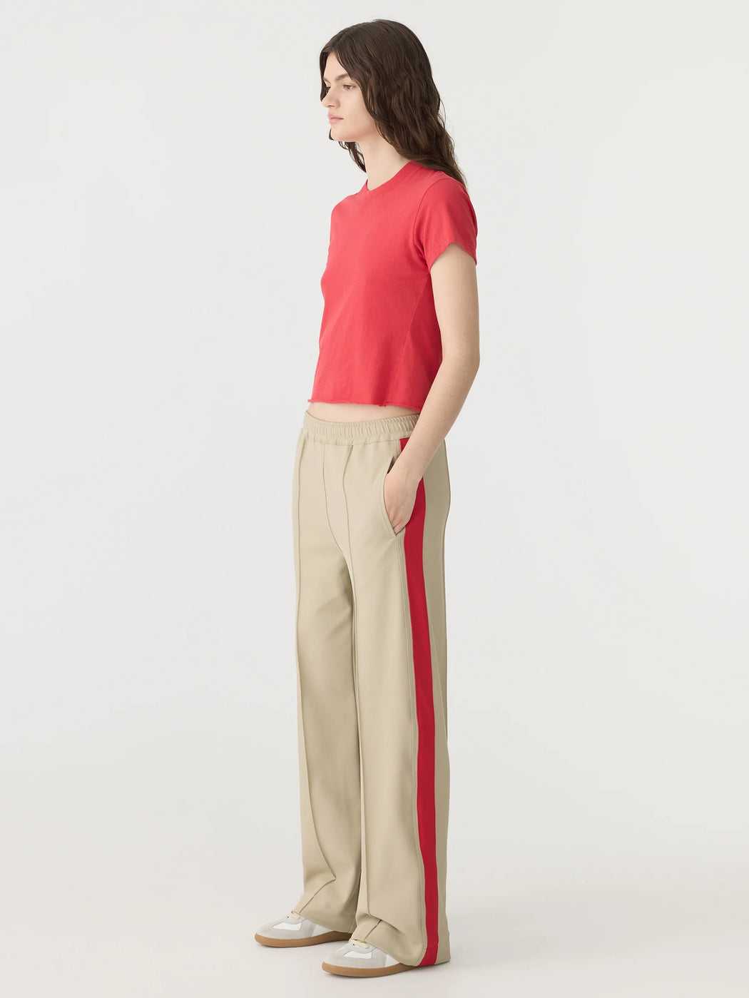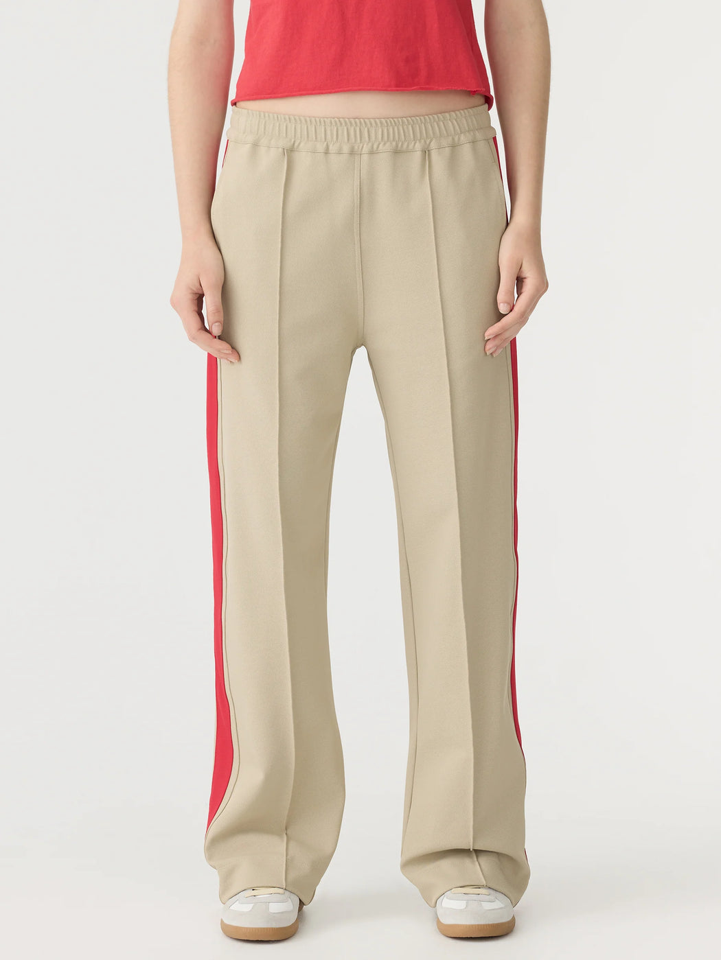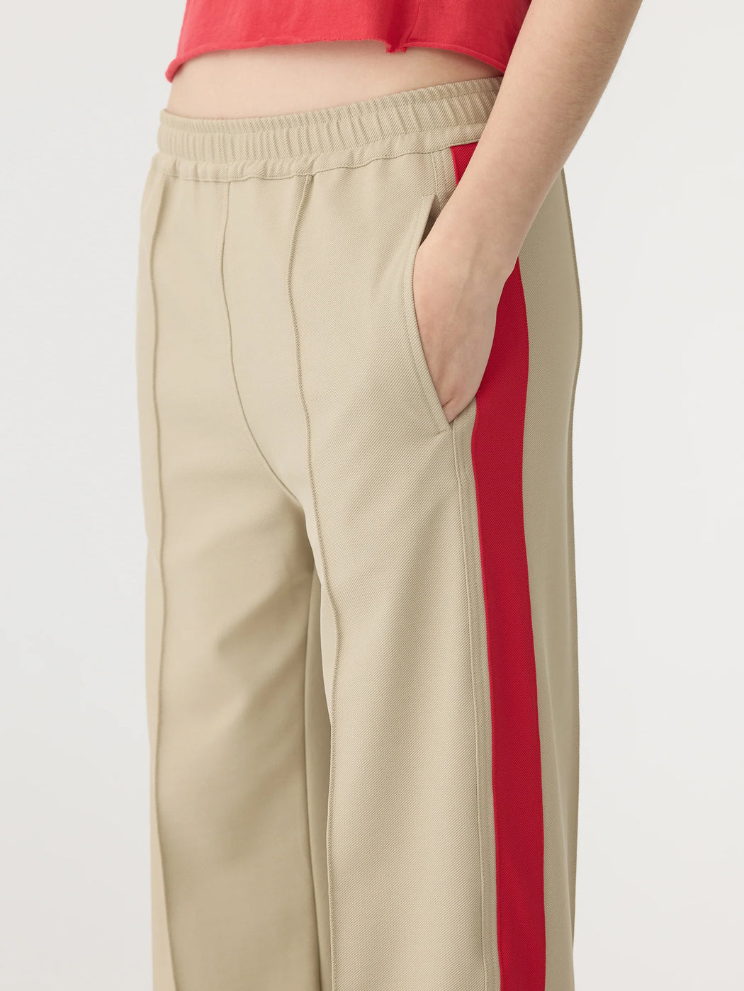 BASSIKE TWILL STRIPE DETAIL PANT LIGHT TAN/RED