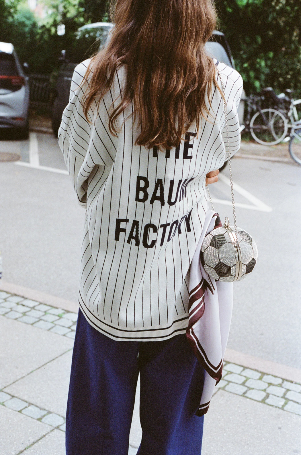 The Cissi Cardigan is an oversized knitted cardigan with a contrast hem, offering the perfect combination of comfort and bold design. Featuring a V-neck and classic button closures, it creates a relaxed yet polished silhouette. The standout feature is the text across the back, adding a bold, modern edge. Ribbing at the neck, hem, and wrists ensures structure and a snug fit, making it ideal for effortless layering.