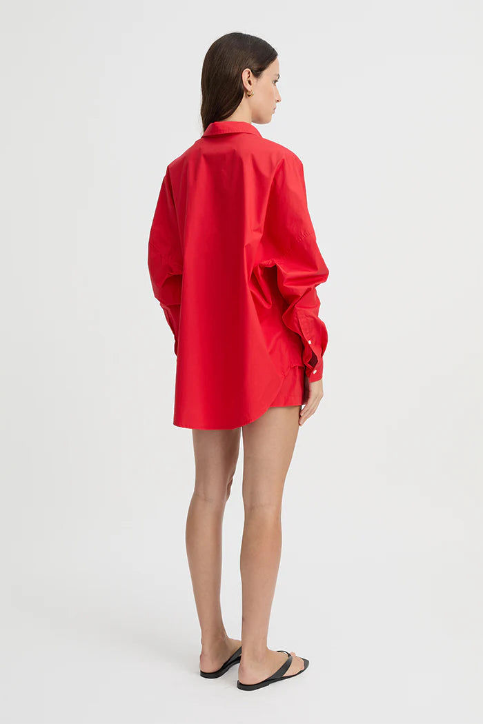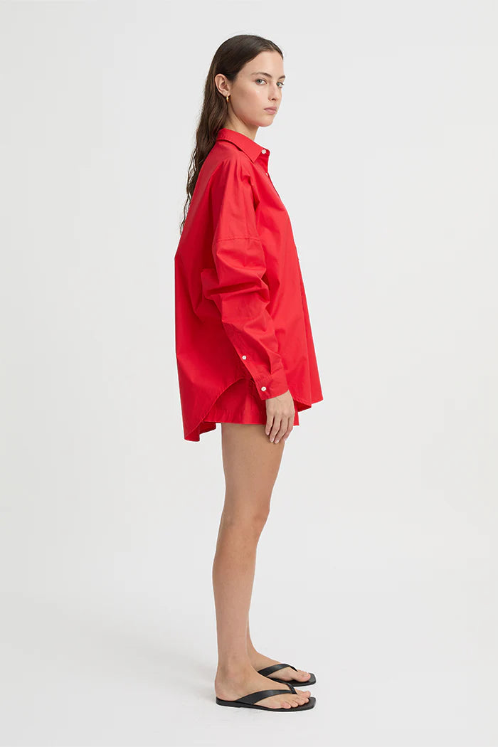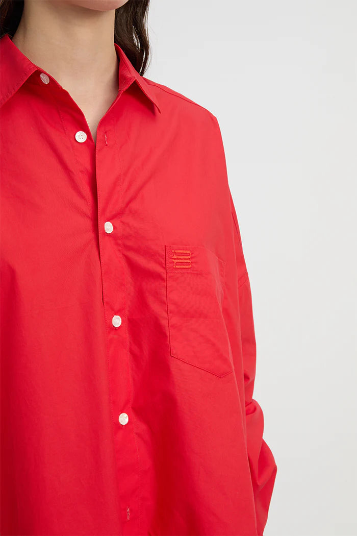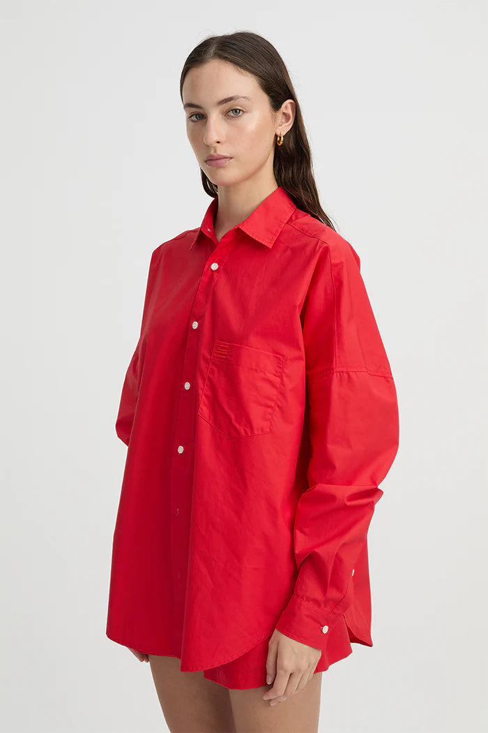 Create your perfect look year-round with the Rachel Shirt. This effortlessly stylish oversized long sleeve shirt is a must-have for any wardrobe, offering a timeless, versatile design that works season after season. Featuring a classic button-front closure and a rich, solid red color, it’s ideal for a variety of occasions, from casual coffee dates to laid-back picnics. Whether you’re off-duty or at work, this red shirt is the ultimate summer essential.