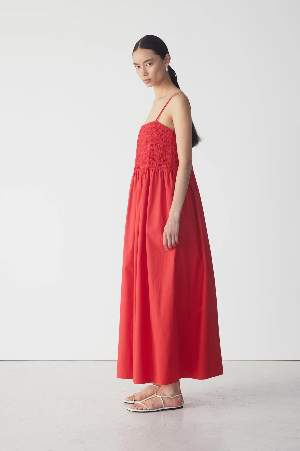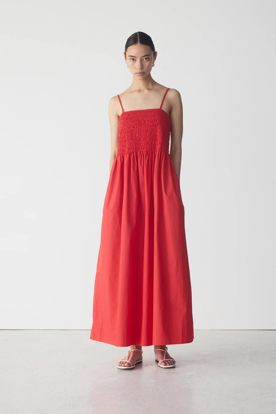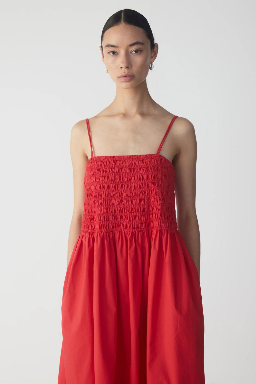 Playfully reinventing an effortless vibe, the Liv’s minimalist silhouette crafted in crisp cotton poplin is heroed by its ruched bodice and unique adjustable straps. Finished with side seam pockets and concealed side entry zip this dress defines the meaning of ease.