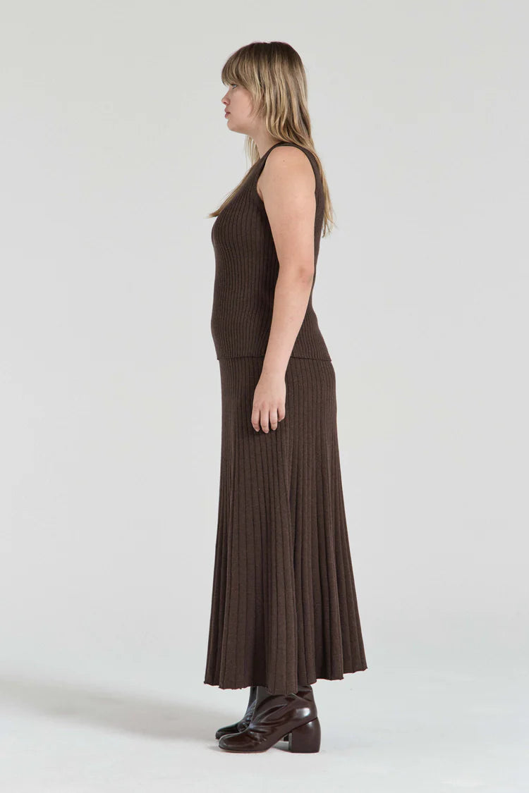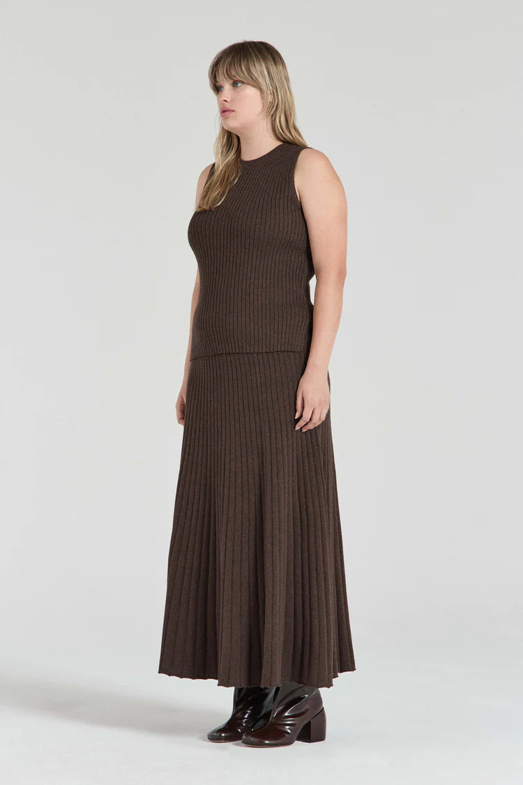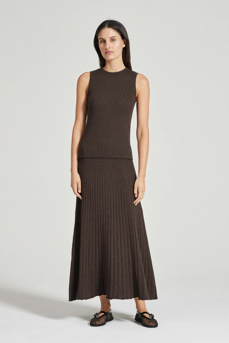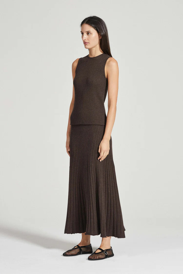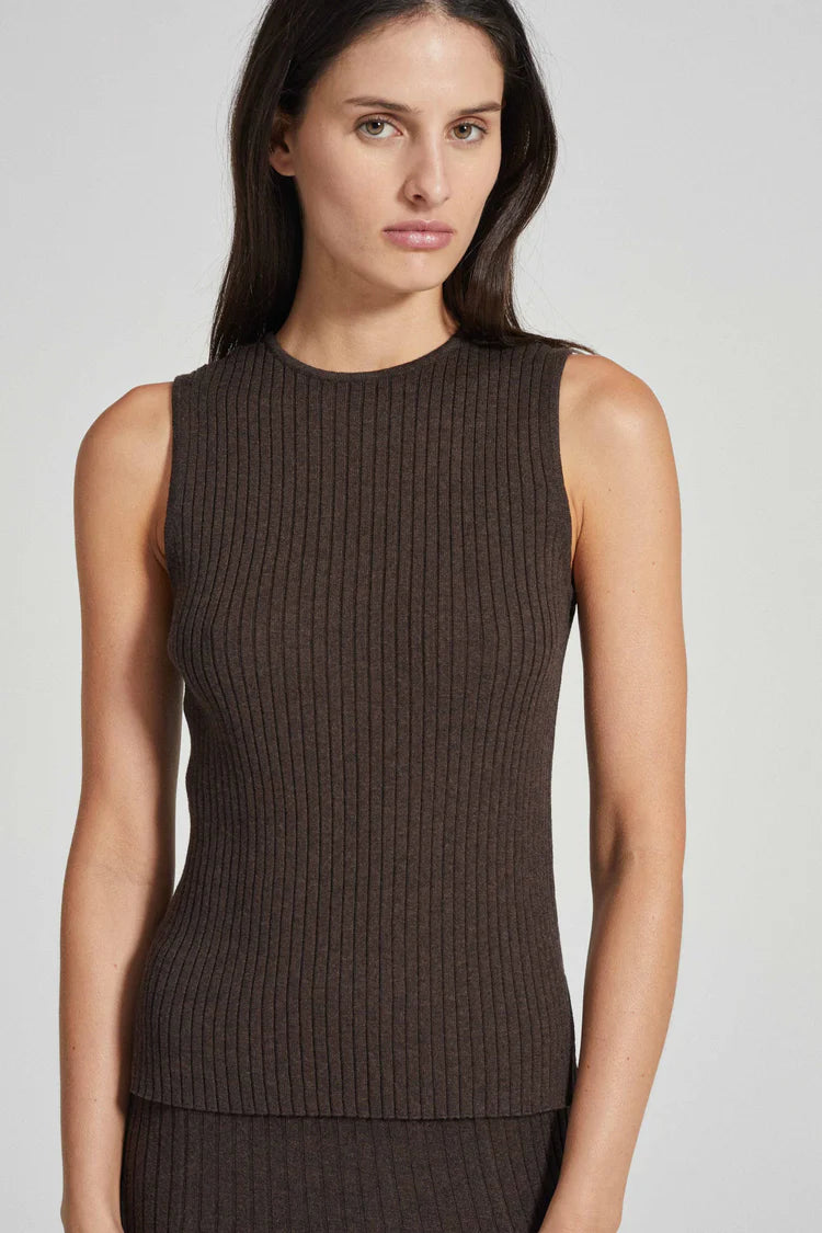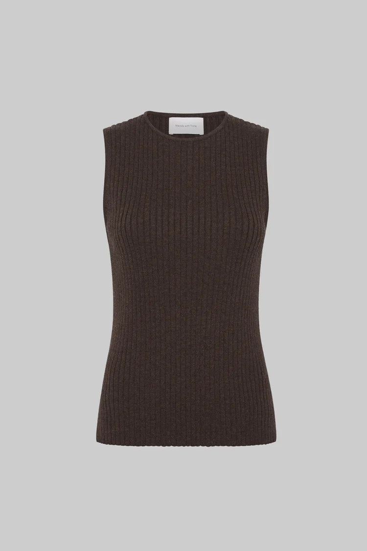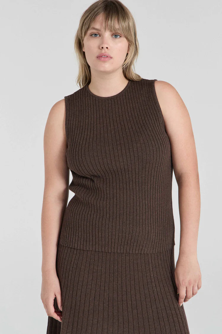 FRIENDS WITH FRANK THE SLEEVELESS CLEO TOP CHOCOLATE MELANGE COTTON