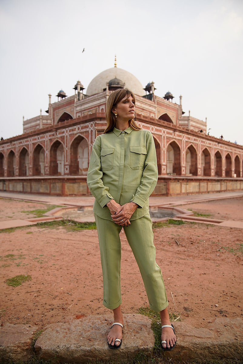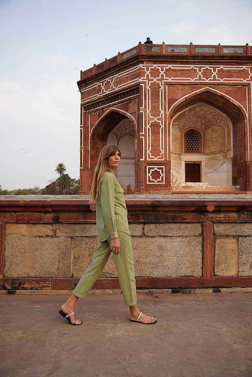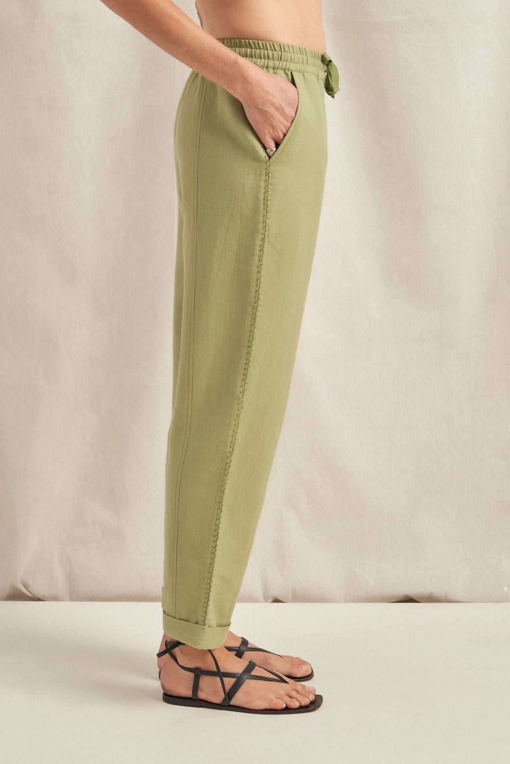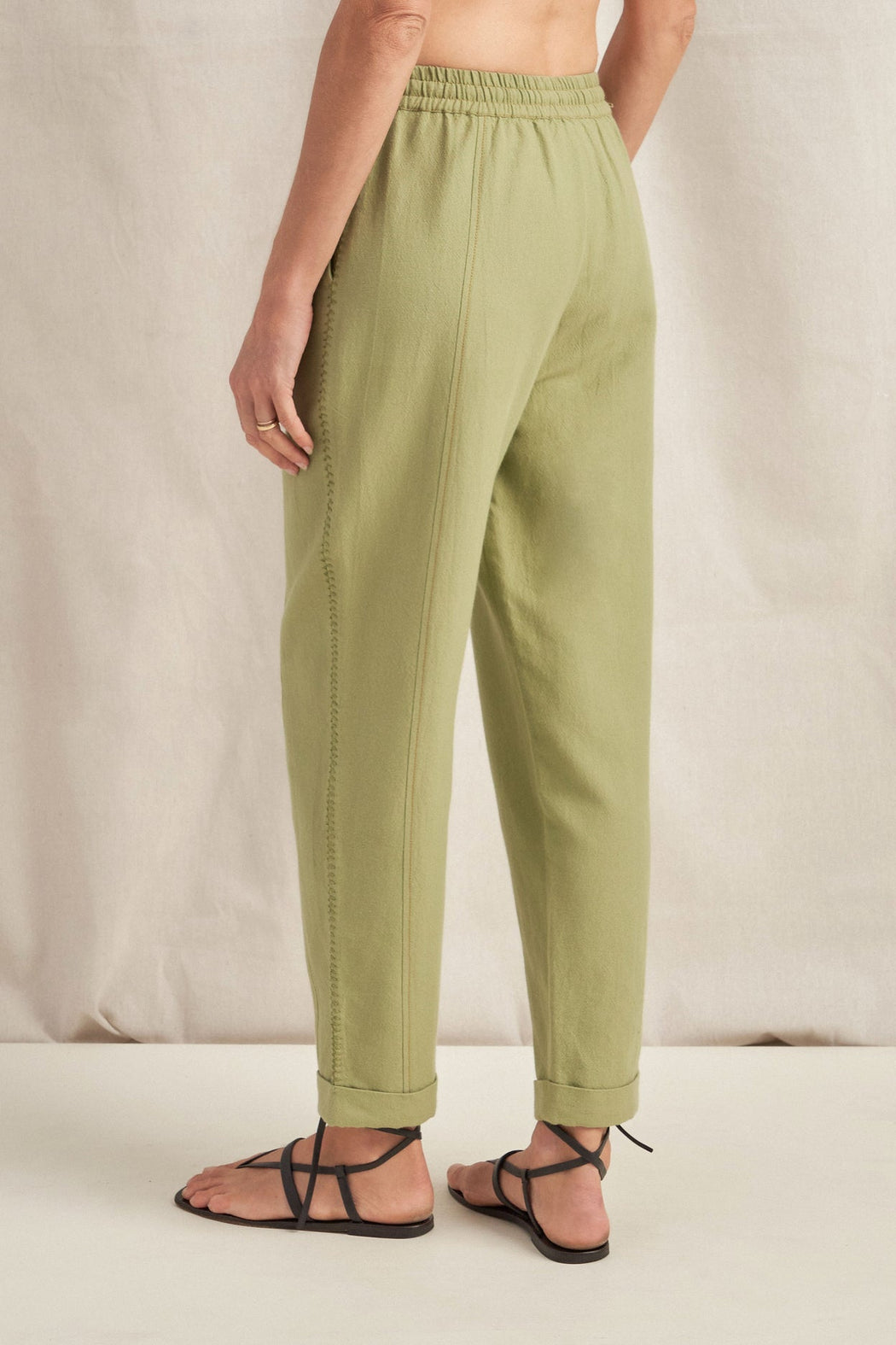 The Cadmus Pants are cut from our signature hand-woven fabric and feature an elastic waist, drawstring and side pockets. These luxe trousers are embellished with hand-stitching details down the side of the leg. Wear with the Paris Shirt for a matching set.