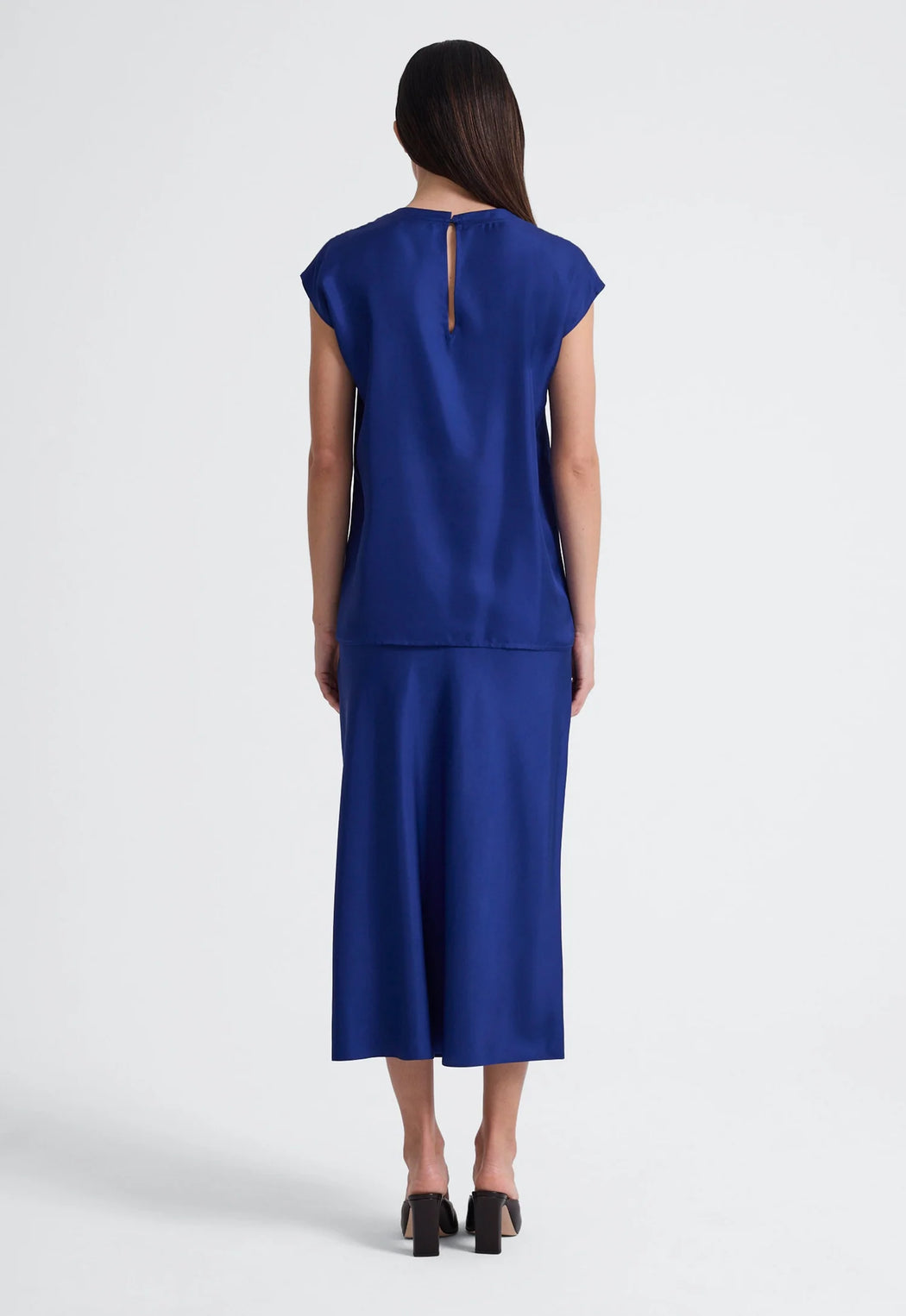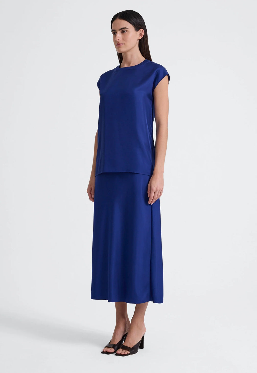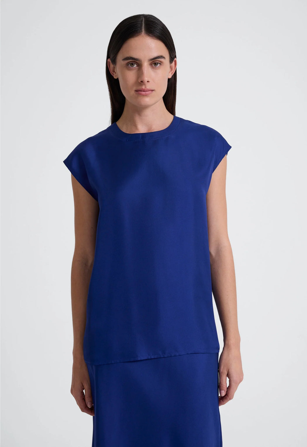 Featuring clean lines and minimal details, this women's silk top features an elegant crew neck and relaxed fit throughout the body. Balancing the natural drape of a fluid fabrication with a slightly boxy cut, this luxury silk top is best styled back with silk pants or shorts and softly tailored skirts for easy outfitting.