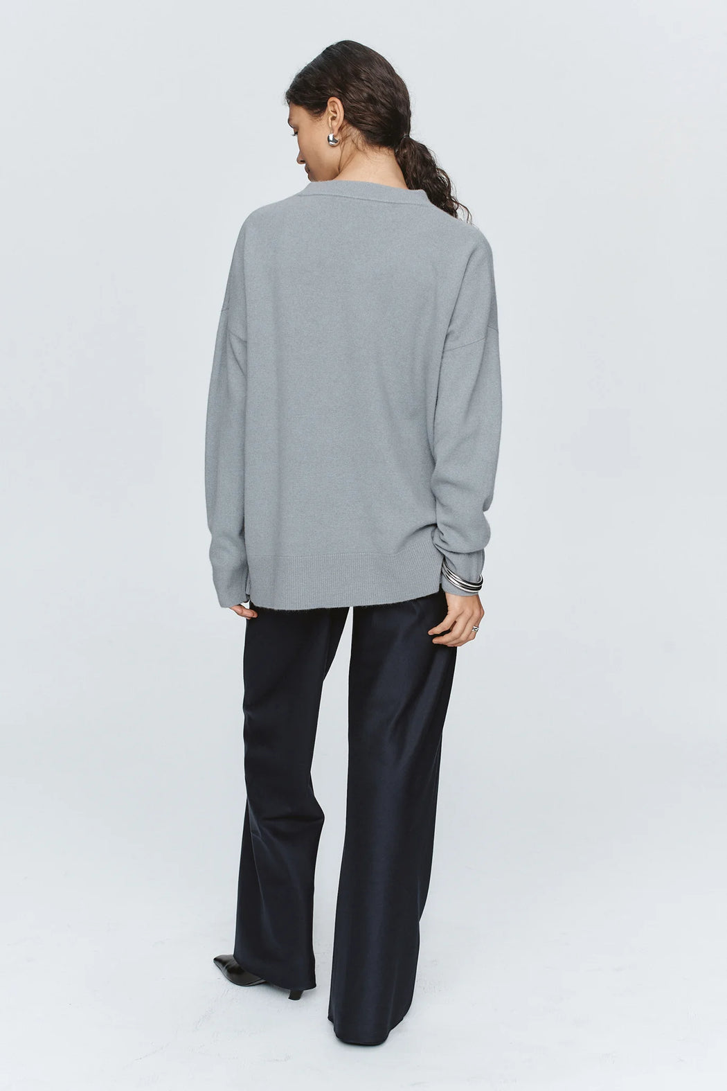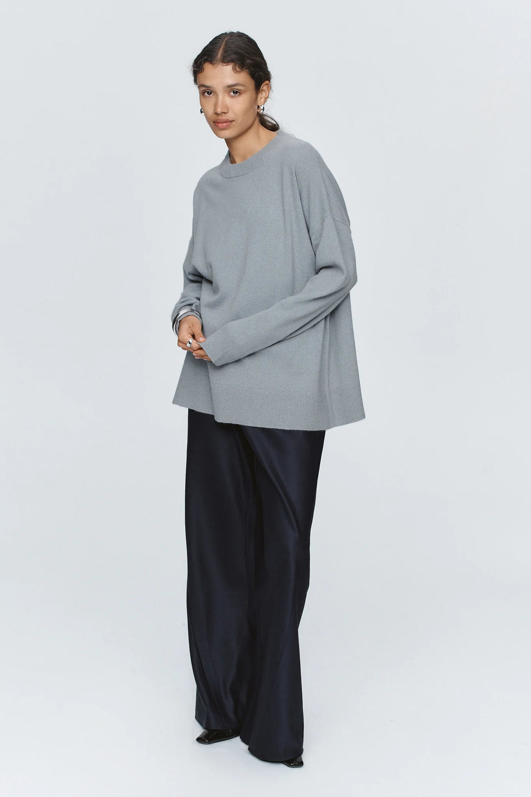 The Joni Jumper is an update to our adored Jo Jumper. It is crafted in the same signature, beautifully soft Perino yarn, which is made in New Zealand and is a blend of Super Fine Merino, Possum and Silk. This jumper features the same round neckline, relaxed fit and dropped shoulder. This version of the Joni features a plain stitch and is finished with a ribbed hem.