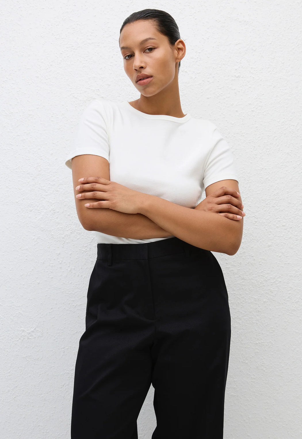 A workwear-inspired flat front trouser in our organic cotton-blend twill for everyday ease. This trouser features a tailored waist band, side pockets and a fly-front zip. Pair with any of our tees or tanks, and add our Boyfriend Belt for an elevated daytime look.