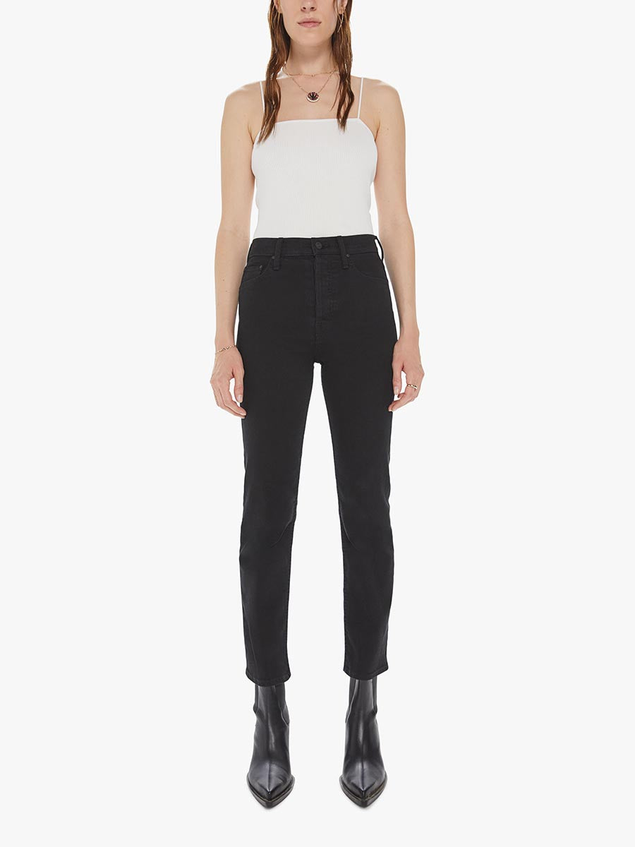 Dressed to impress. High-rise jeans with a straight leg, button fly, ankle-length inseam and a clean hem. Cut from a cotton blend with a touch of stretch, Lasting Impression is black with tonal hardware.