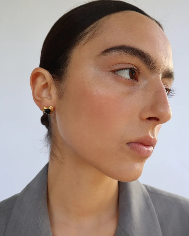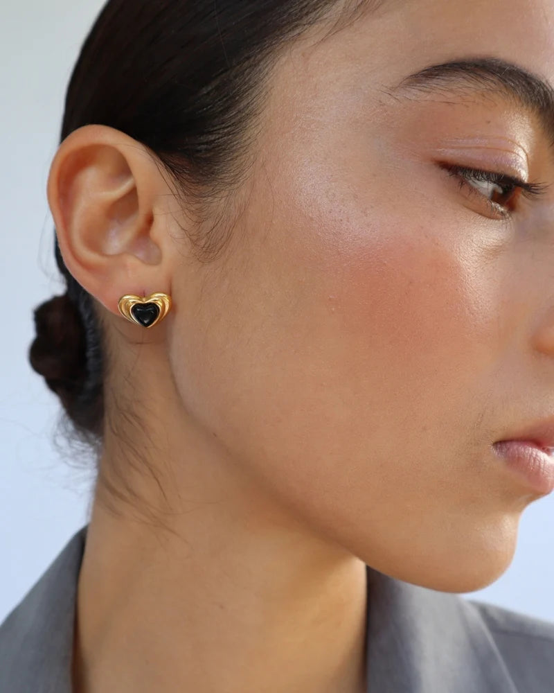 Fall in love with the charm of the Waylon Earrings—the perfect fusion of sweetness and edge. She’s a bold little accent, effortlessly elevating your everyday look or adding a touch of whimsy to your evening ensemble. Crafted with striking black interior framed by a gleaming gold outline, these heart-shaped earrings bring a modern twist to a classic silhouette, making them an essential piece for those who dare to be different. Lightweight and comfortable, she’s designed for all-day wear, whether you’re at the office or out on the town.
