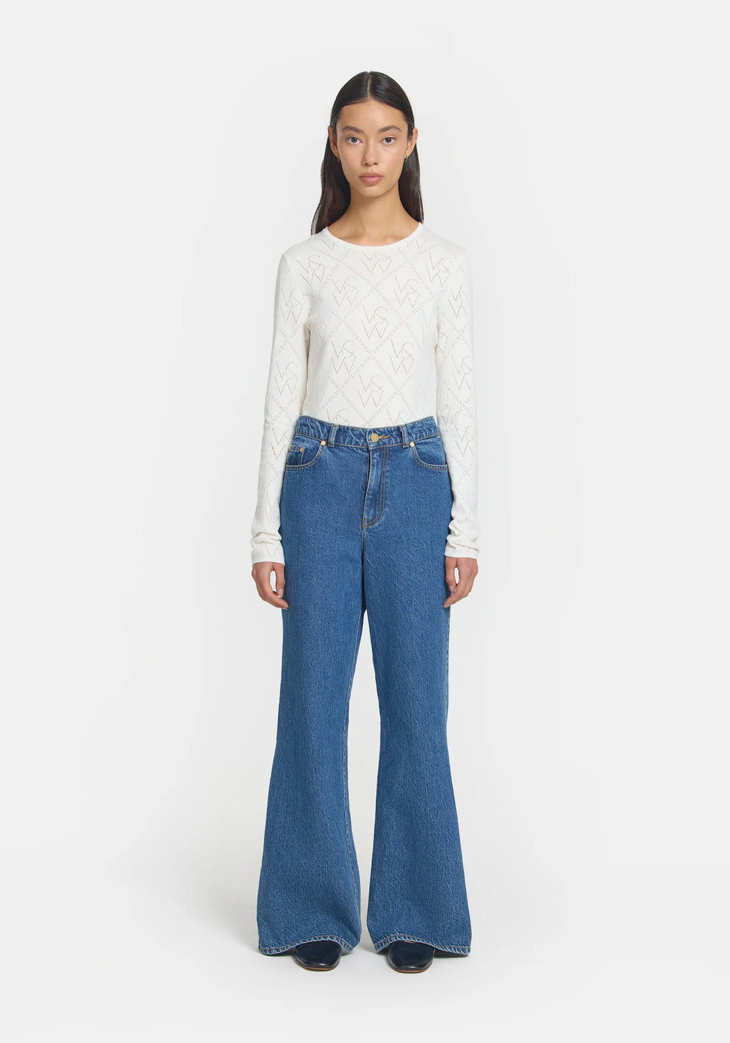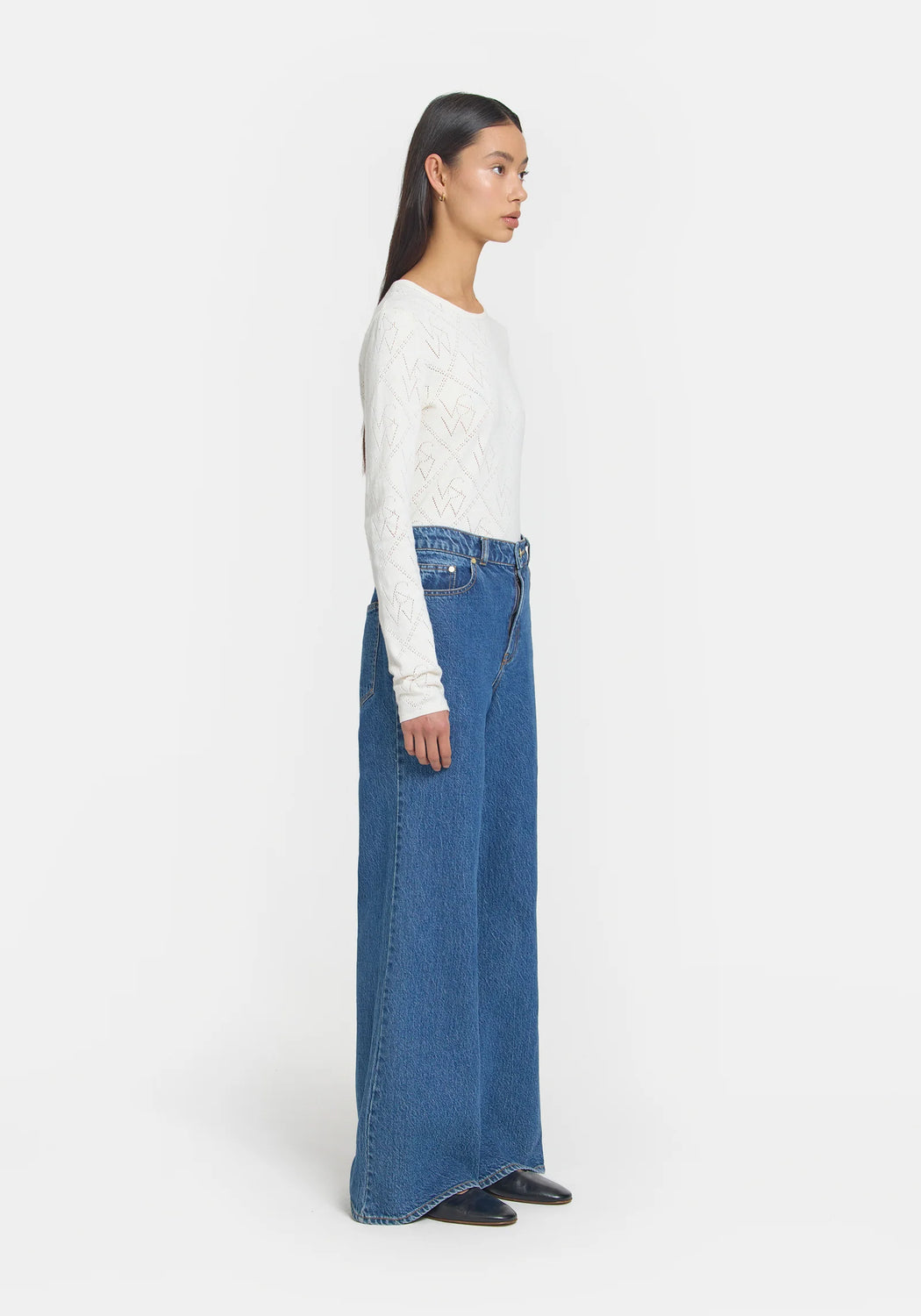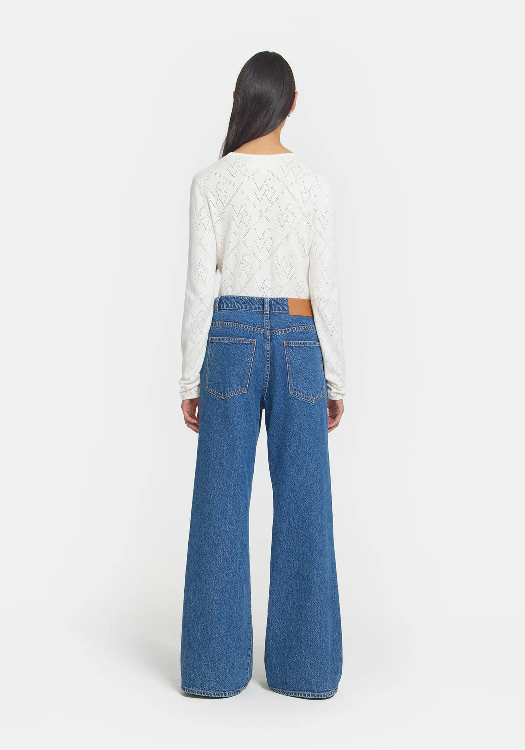 Introducing the Medley Crew, a luxurious V&W pointelle signed base layer. Crafted from organic cotton in navy, it is fitted through the body and sleeves, boasting a ribbed neckline, cuffs, and hem for a seamless blend of style and comfort. Ideal for monochrome versatility, this crew neck top is a cosy addition to your wardrobe essentials.